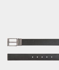 Bally Men’s Shiffie 35mm Reversible Belt In Red And White Fabric And Black Leather | Multicolor
