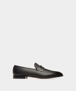 Bally Webb Men’s Grained Deer Leather Penny Loafer In Black | Black | Men’s Shoes