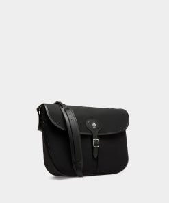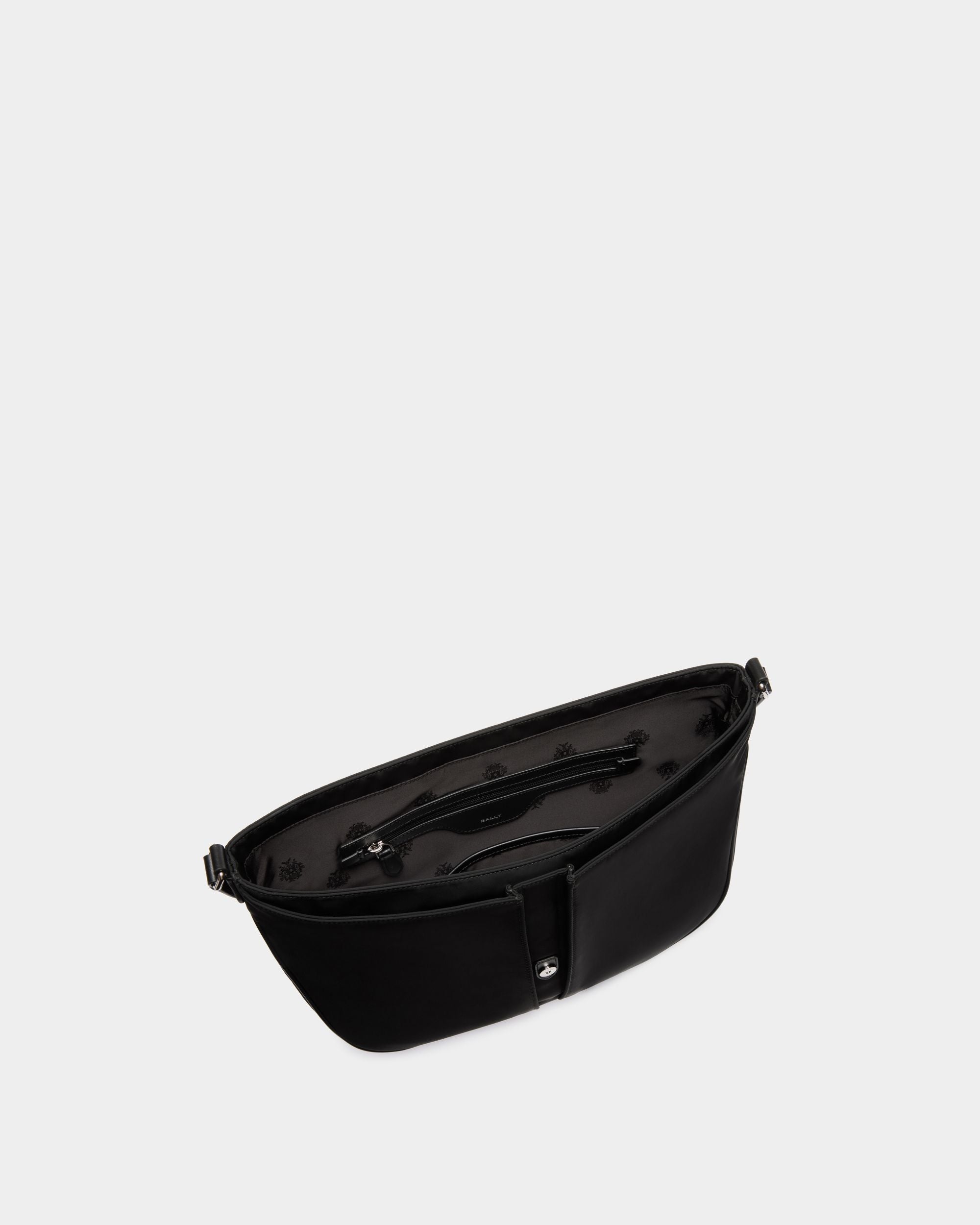 The B-Light crossbody bag has an essential all-black design in nylon fabric with leather trim. A foil Bally Crest sits above the palladium-hue metal buckle on the front flap closure.