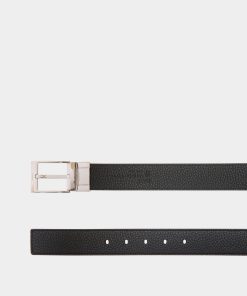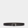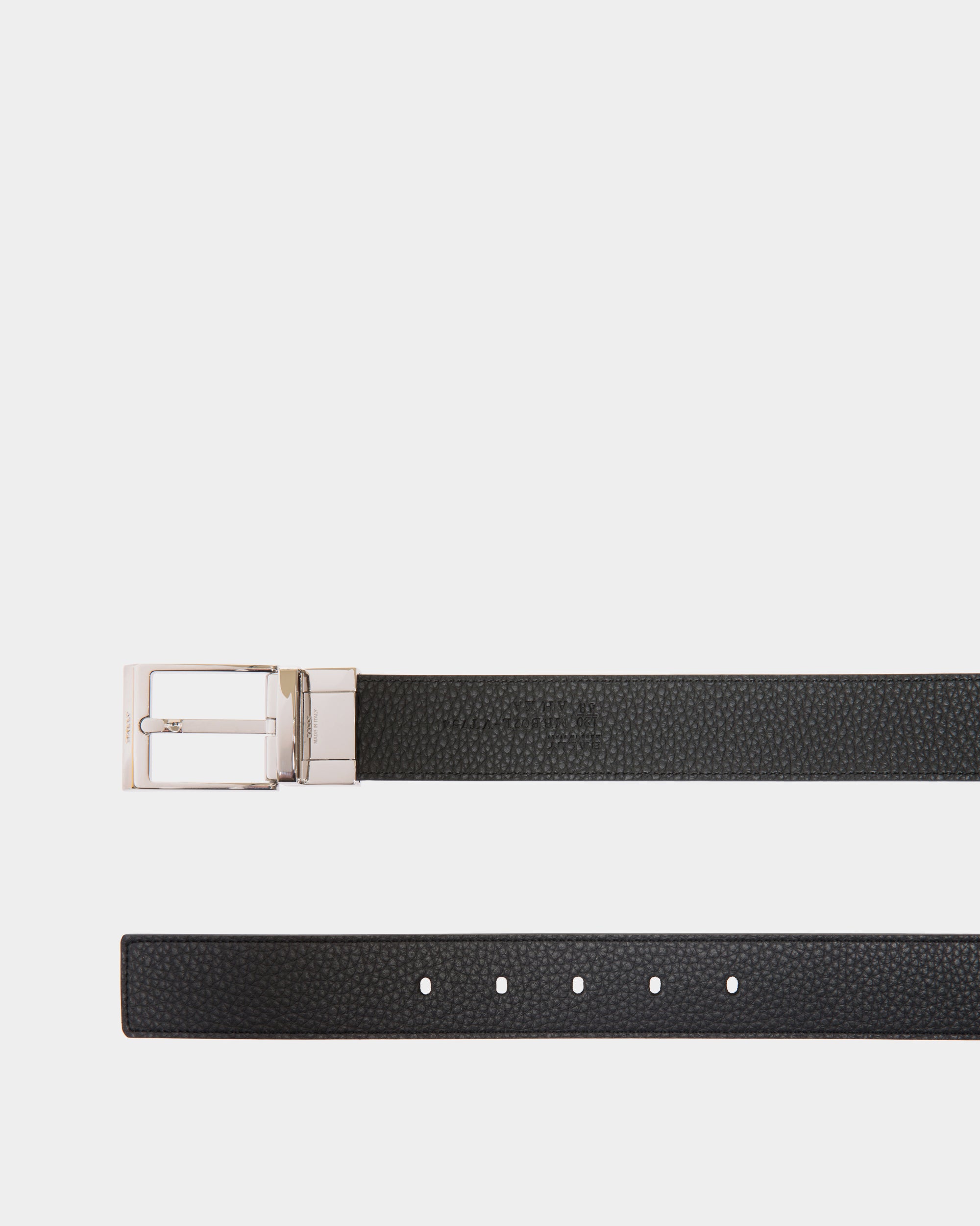 Adjustable and reversible, the Shiffie 35mm belt offers a choice of navy blue or black leather. The rectangular buckle at the front, in polished silver-tone metal, is embellished by an essential debossed Bally logo.