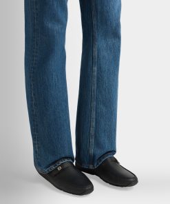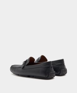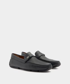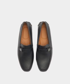 This Pilot driver in grained Black leather unites a classic driving shoe silhouette with the step-in comfort of moccasin construction. The split rubber sole extends to the toe and heel for added protection.