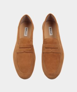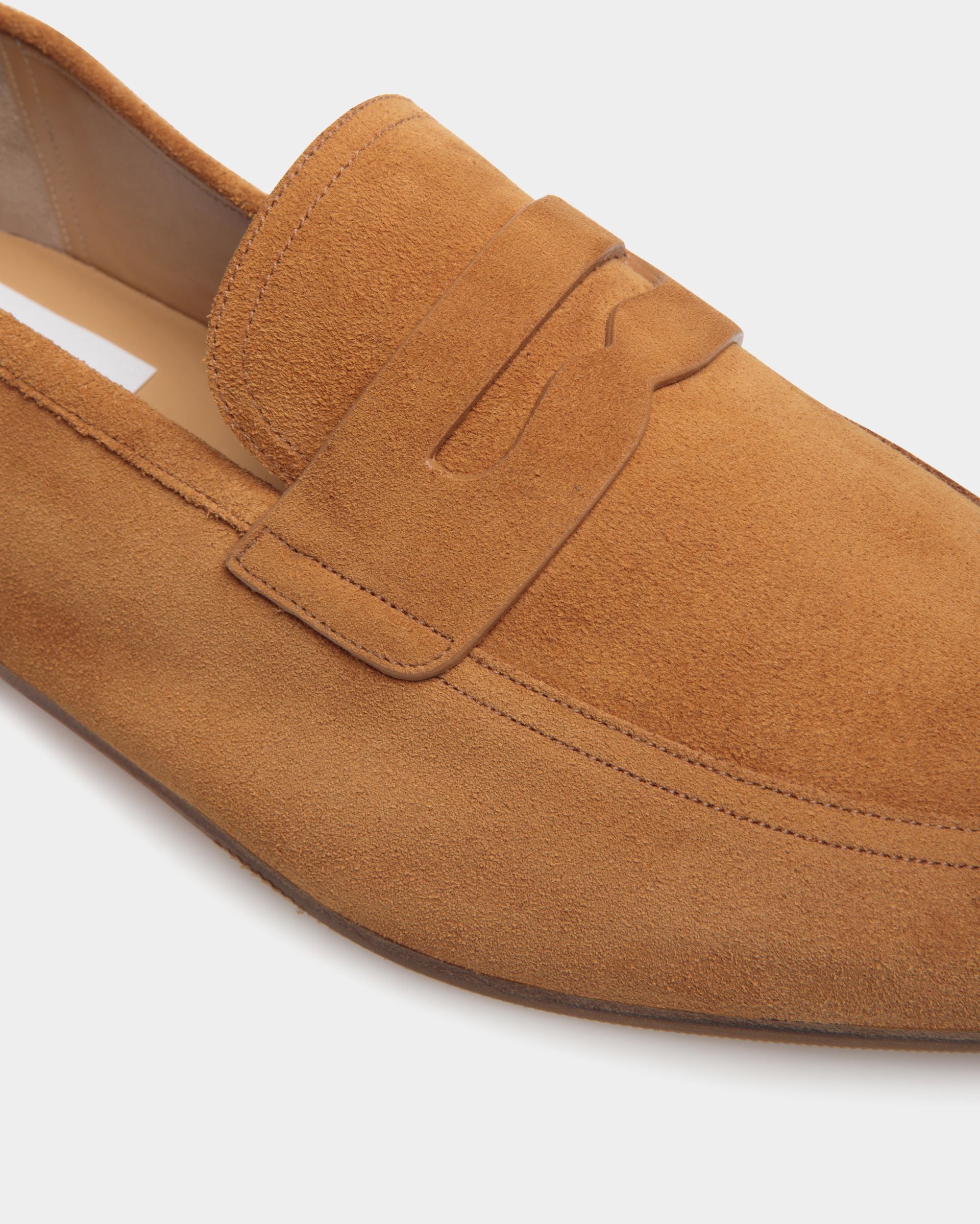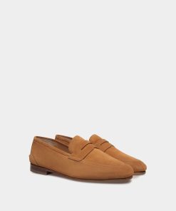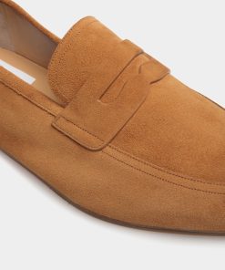 Light as a feather, this essential Plume penny loafer features an upper in brown suede. The flat leather sole with rubber inserts promises comfort and flexibility.