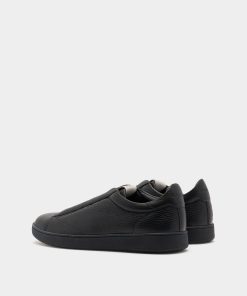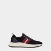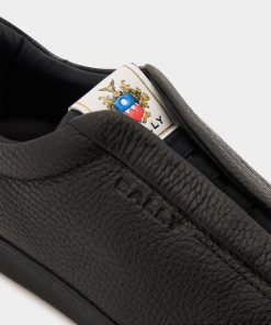 This Retro Crest sneaker in black grained leather is characterized by a sleek slip-on design with tonal elasticated laces set between the minimalist eyestay. A Bally Crest on the tongue and a debossed logo ensure an iconic note.