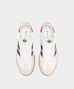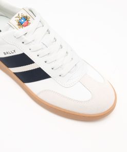A grosgrain Bally Ribbon decorates the side of this Retro Crest sneaker in white leather with suede trim and a natural-hue rubber sole. On the tongue, a Bally Crest label in leather adds an iconic note to this lace-up style.