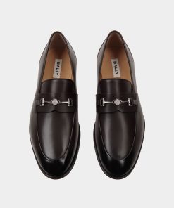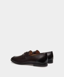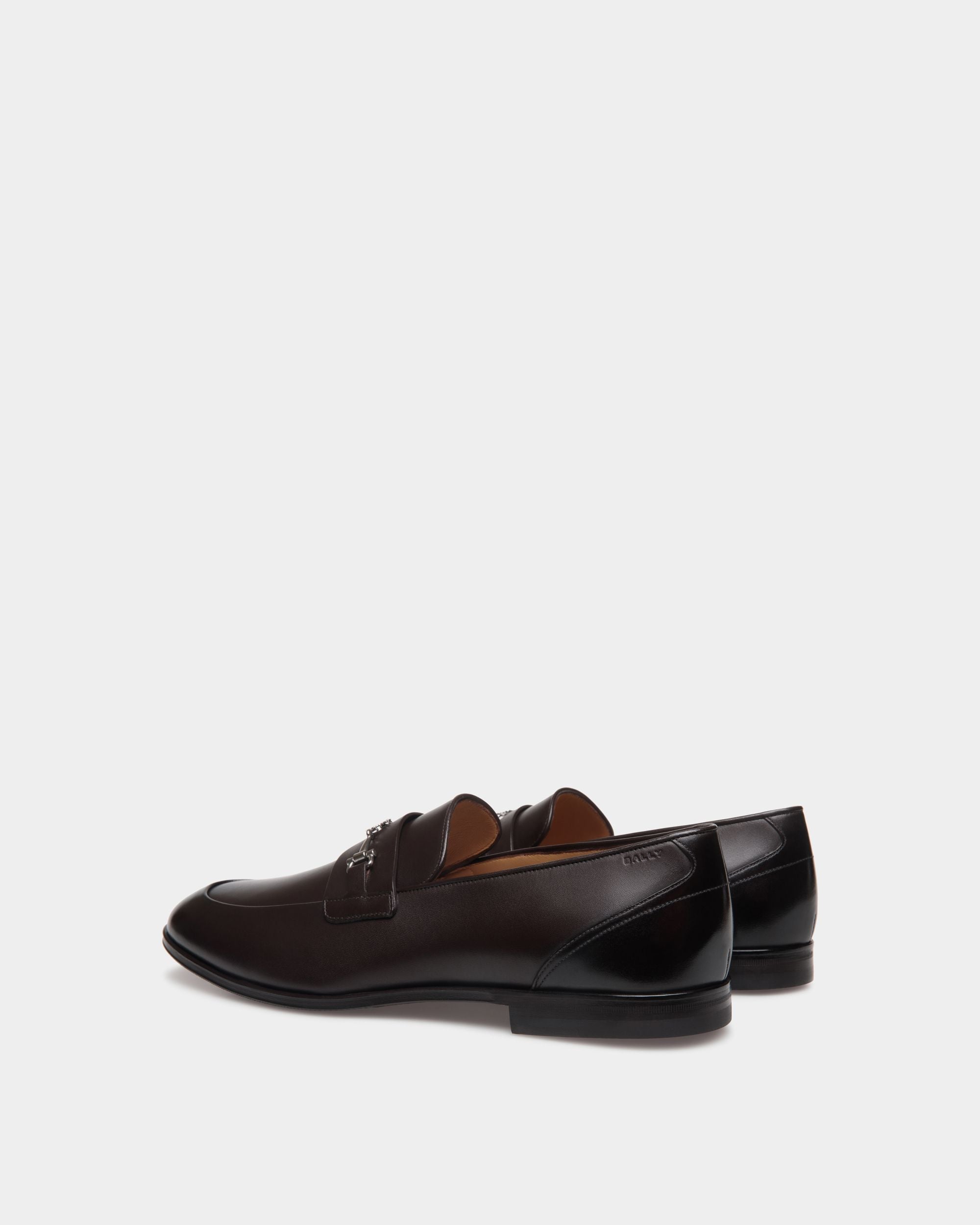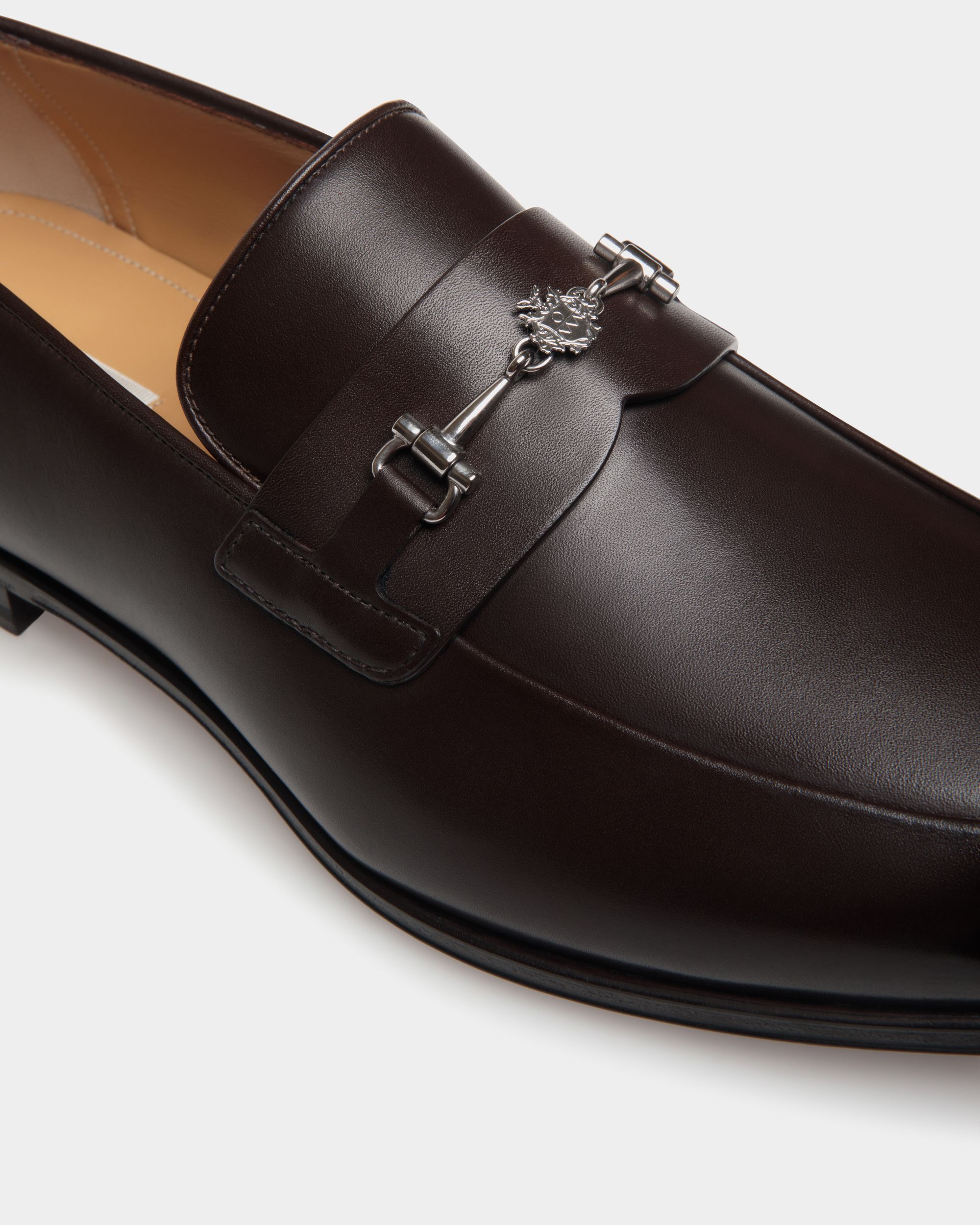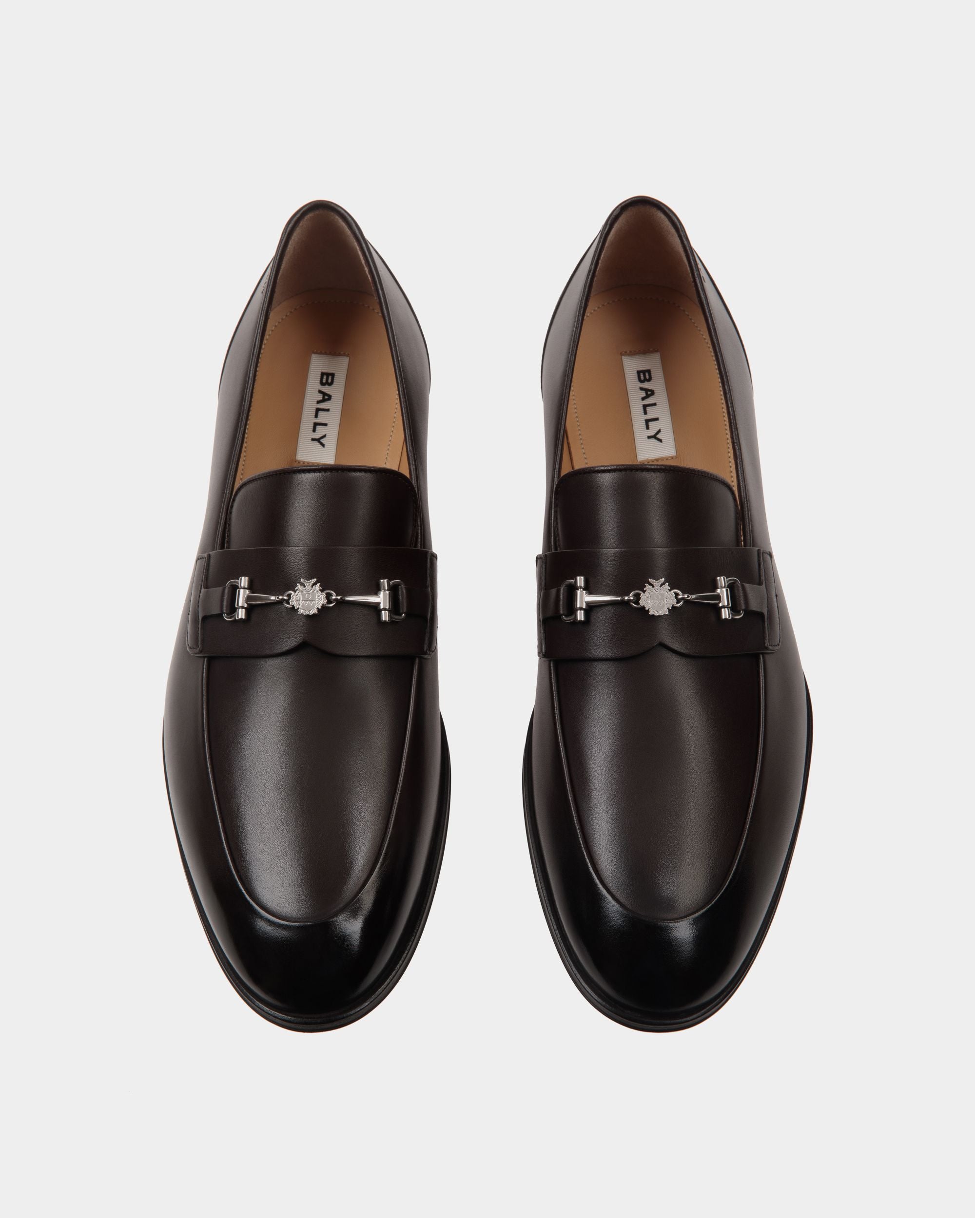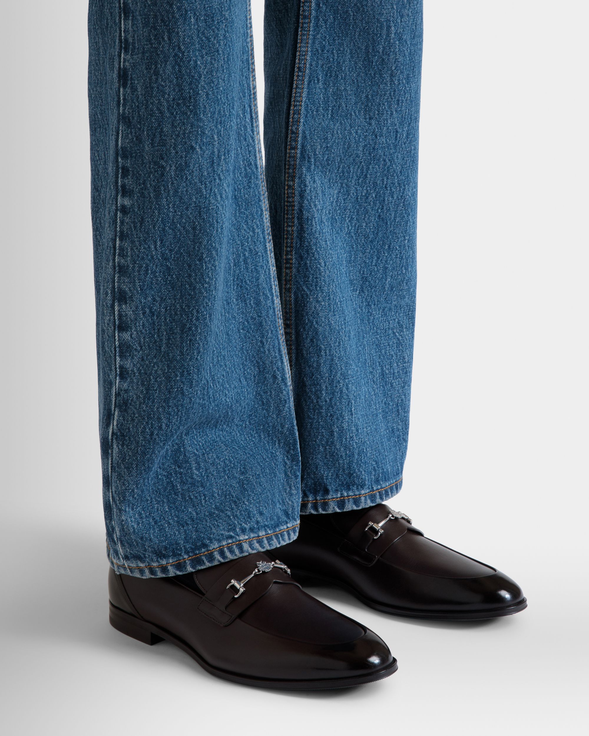 This Westminster loafer in semi-matt Ebano calfskin is finished by a polished toe and a metal horse bit with an engraved Bally Crest detail. Blake construction ensures lightness and a slender profile as it unites the upper with the rubber-injected leather sole.