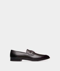 This Westminster loafer in semi-matt Ebano calfskin is finished by a polished toe and a metal horse bit with an engraved Bally Crest detail. Blake construction ensures lightness and a slender profile as it unites the upper with the rubber-injected leather sole.