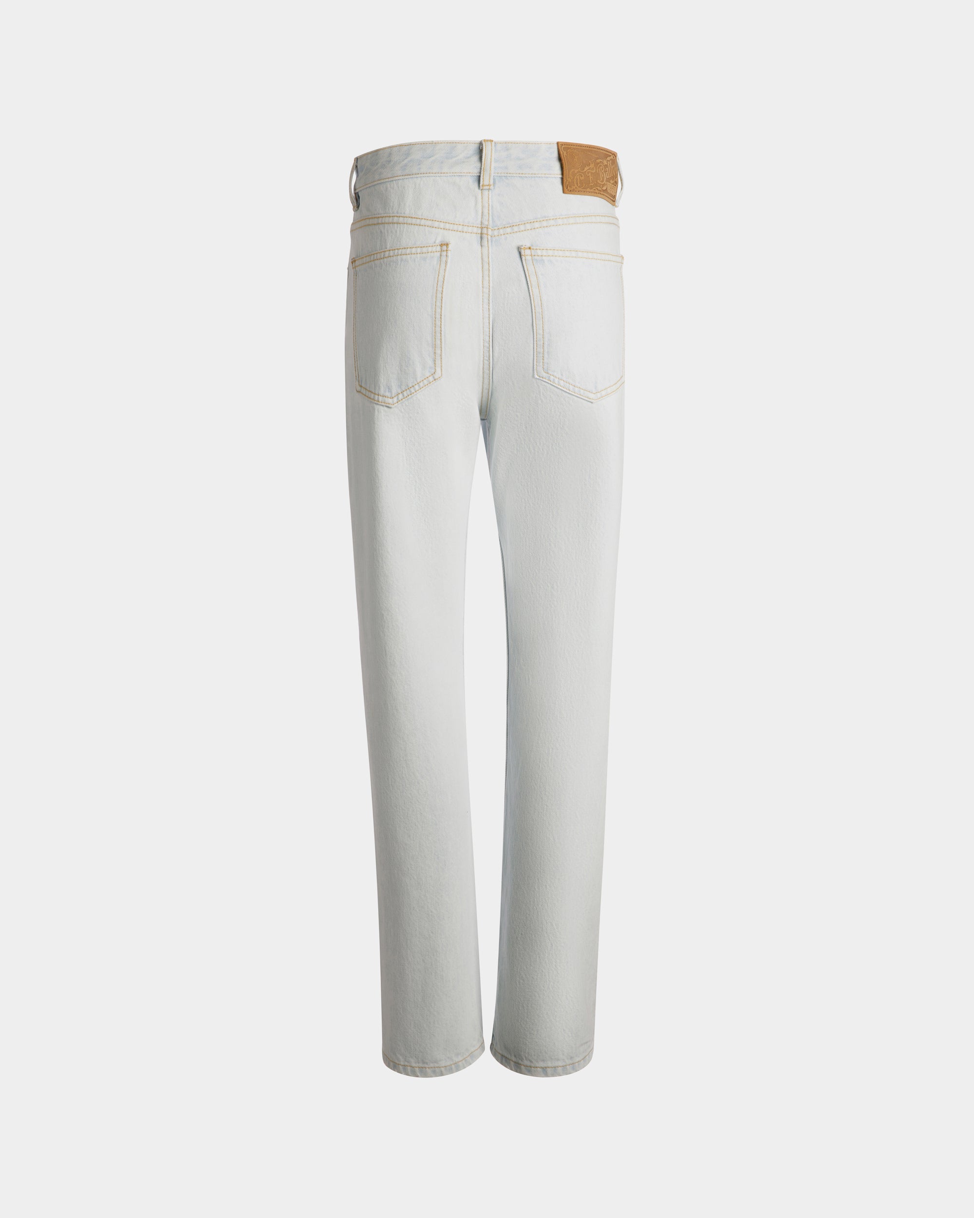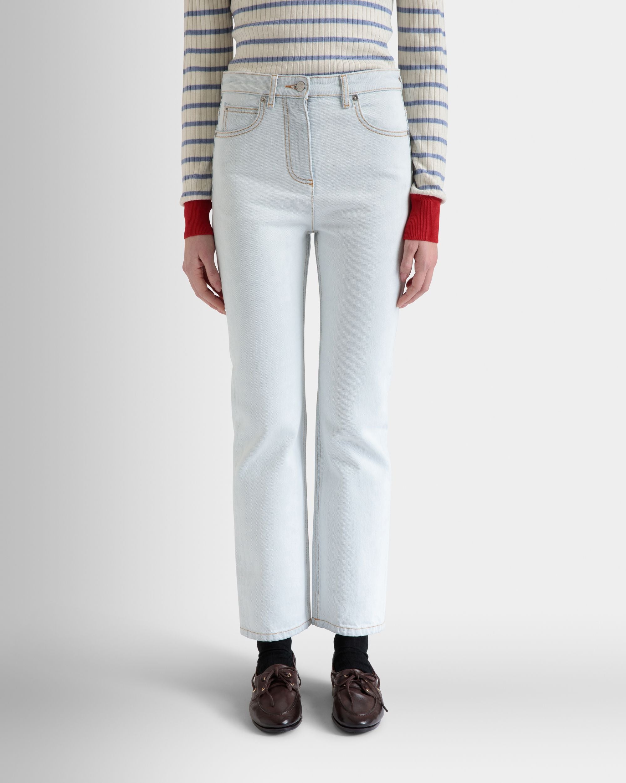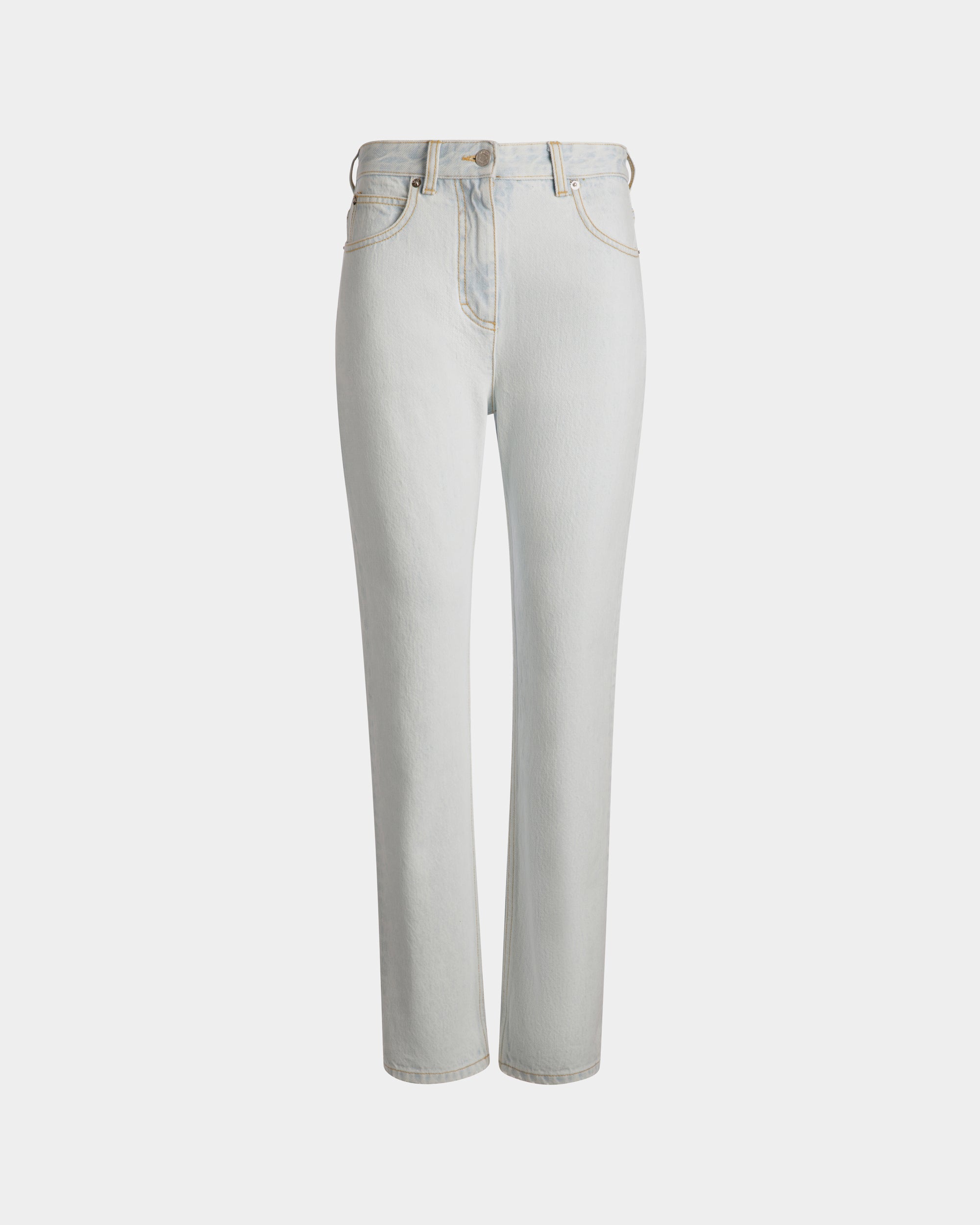 These light blue denim cotton pants have a classic straight-leg silhouette completed by five pockets.