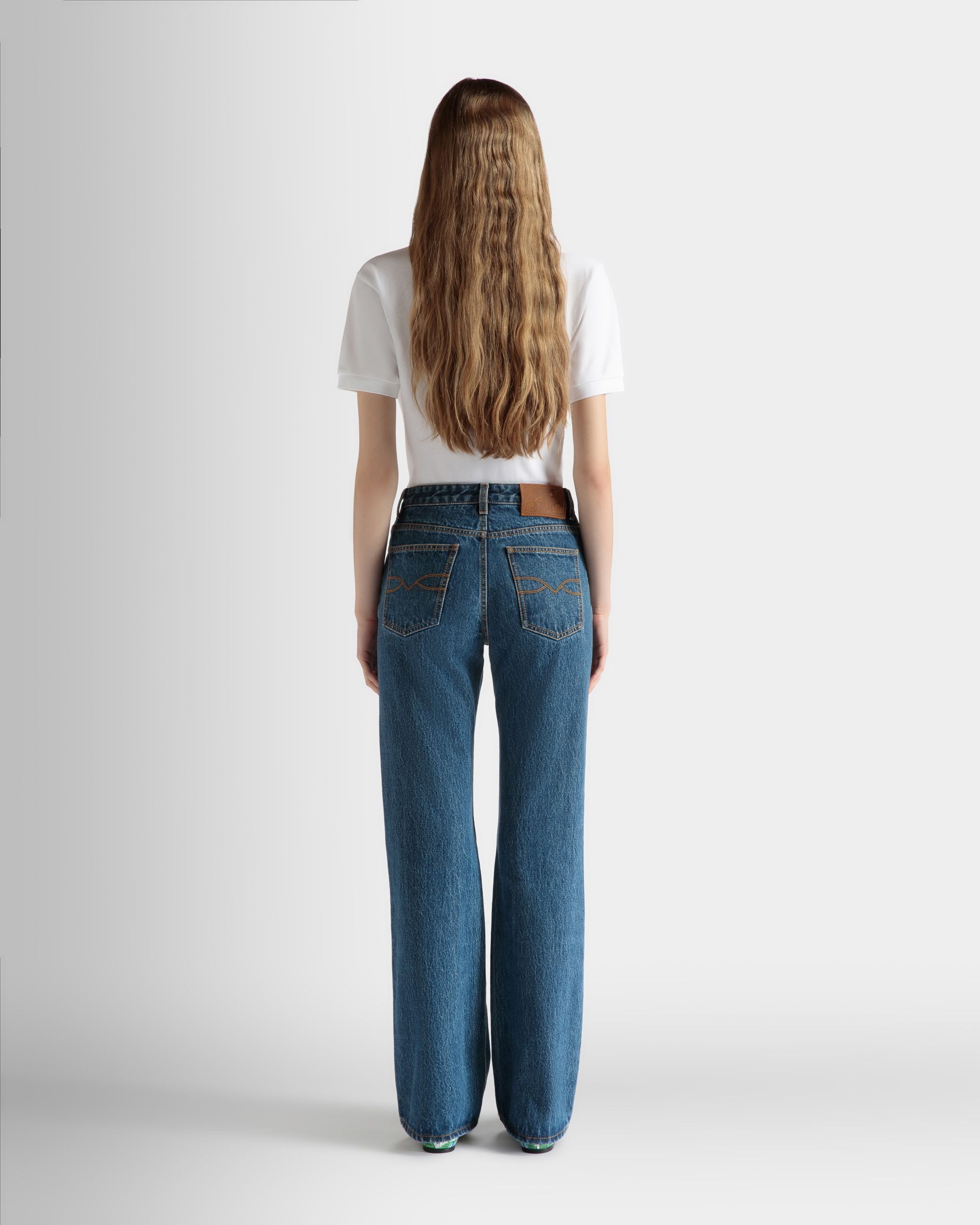 In cotton denim, these flared jeans come in medium blue. The retro-inspired silhouette adds a touch of vintage charm. A Bally tab in leather references the year the brand was founded: 1851.
