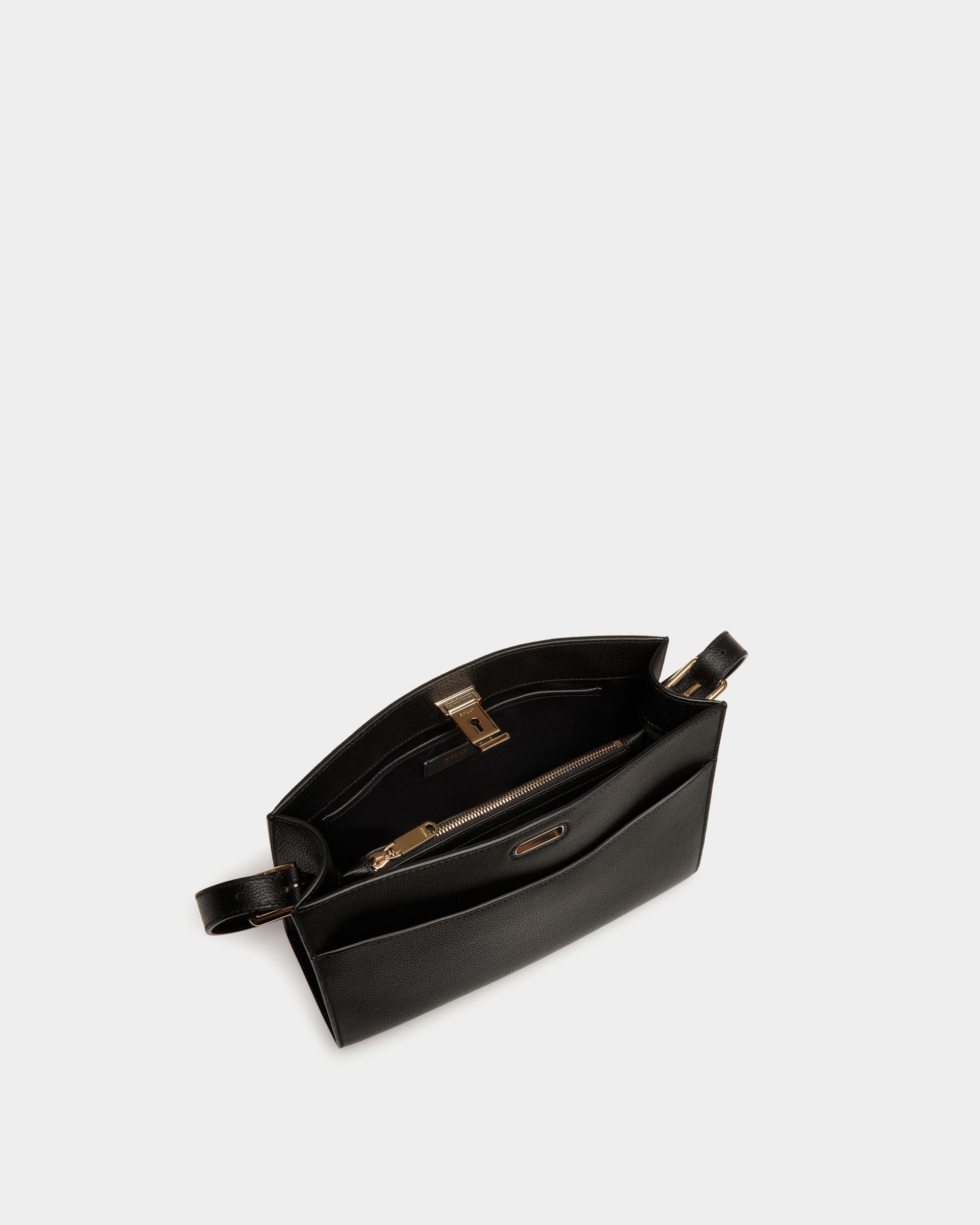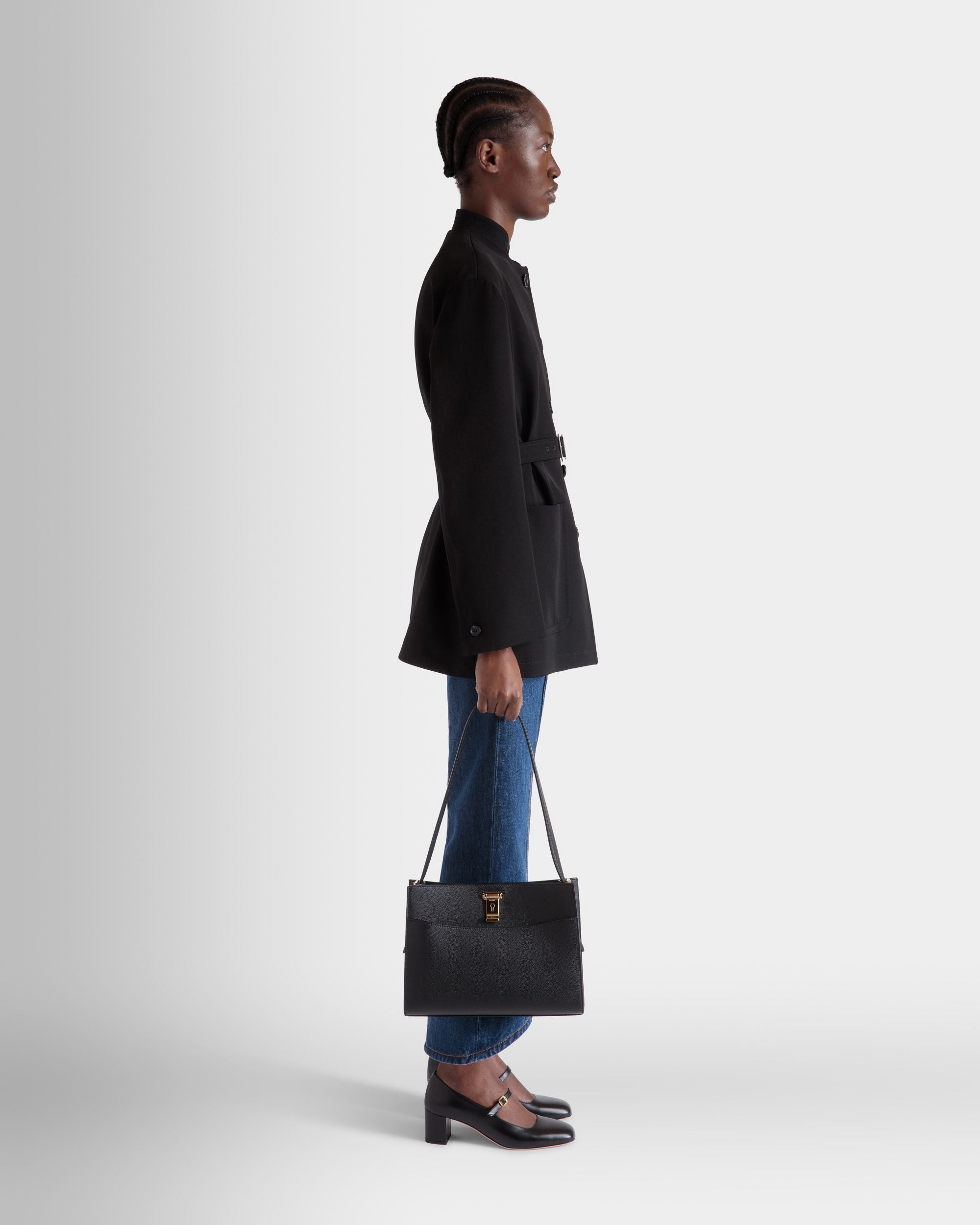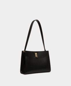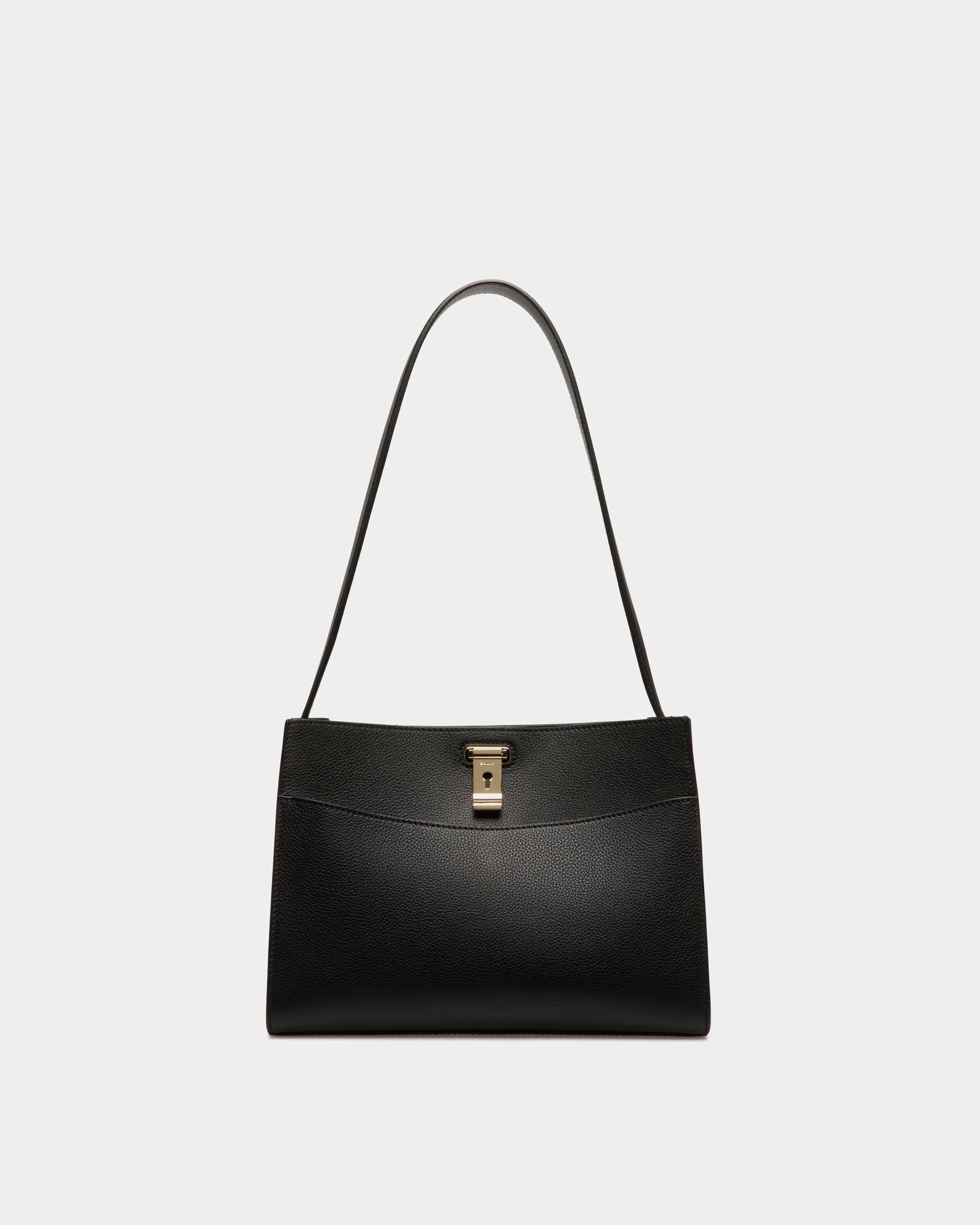 Bally Women’s Lock Me Shoulder Bag In Black Grained Leather | Black