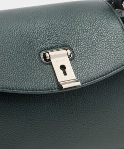 Bally Women’s Lock Me Small Top Handle Bag In Marble Green Grained Leather | Green