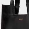 Embellished by the iconic Lock Me hardware with an engraved Bally logo, this small top handle bag in grained calfskin is crafted with precision. Its versatile geometric silhouette features a top handle and shoulder strap for multiple carry options.