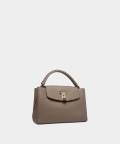 Bally Women’s Lock Me Small Top Handle Bag In Taupe Grained Leather | Brown