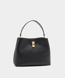 Be the first to review “Bally Women’s Lock Me Top Handle Bag In Black Grained Leather | Black” Cancel reply