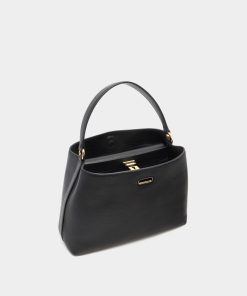Bally Women’s Lock Me Top Handle Bag In Black Grained Leather | Black