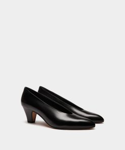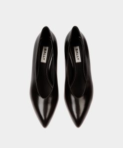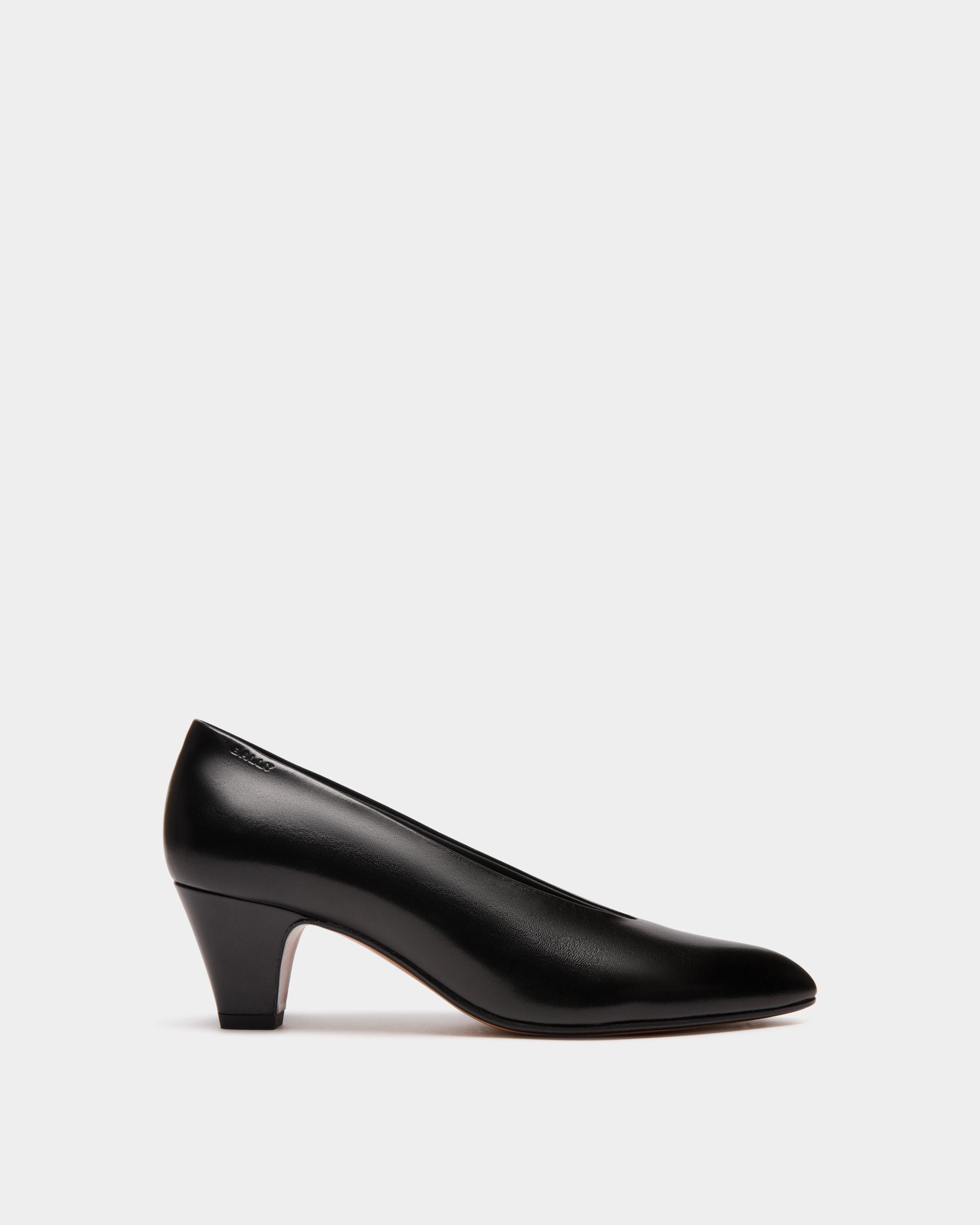 A pointed toe is the defining feature of this Alva Pump in black leather. Inspired by a design from the 1980s found in the Bally archives, the single-piece upper showcases the brand’s meticulous craftsmanship.