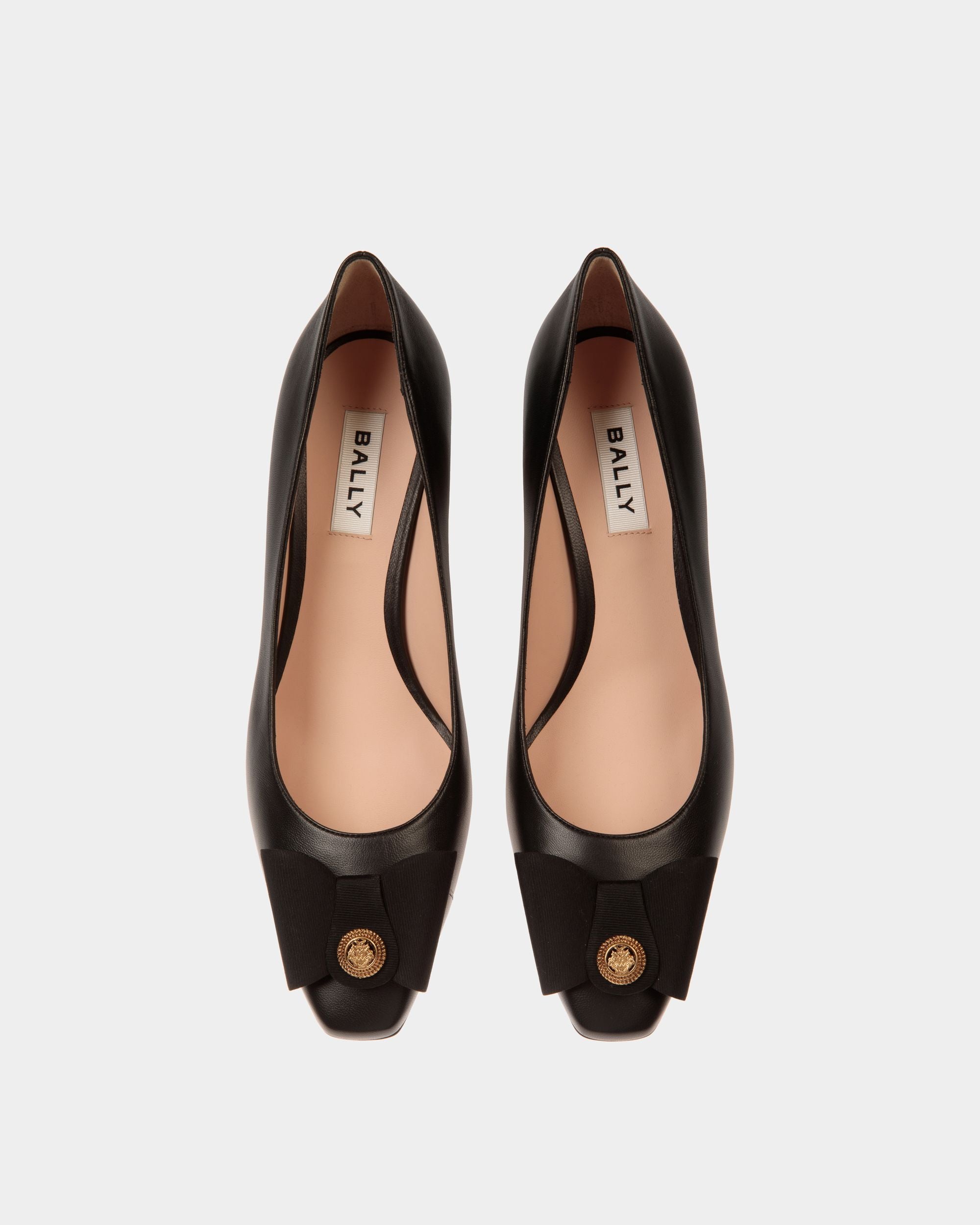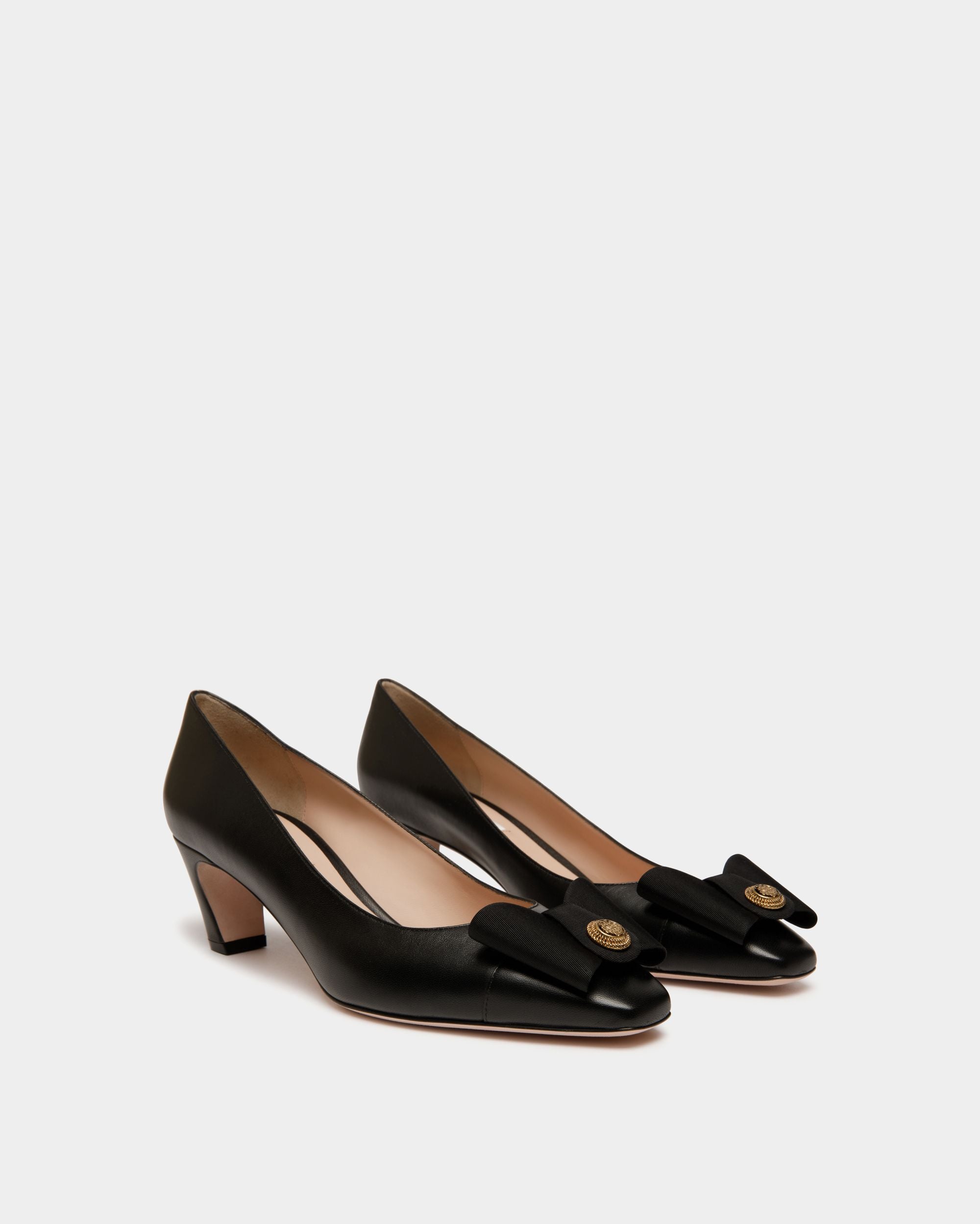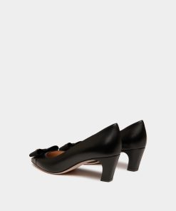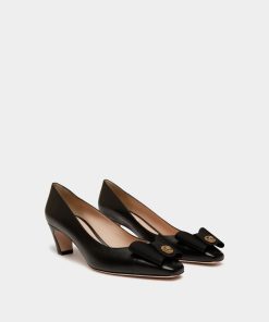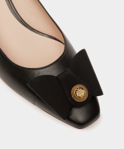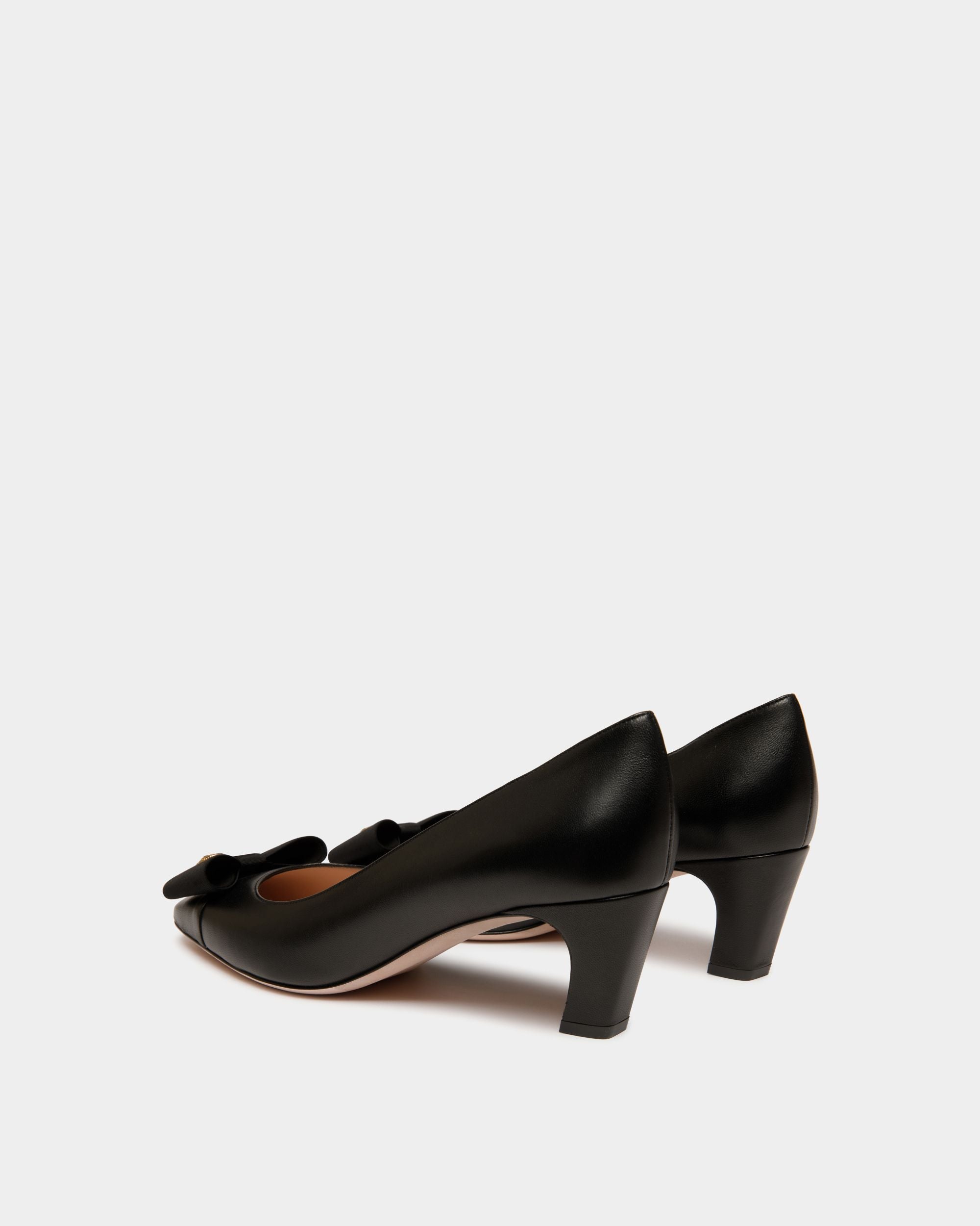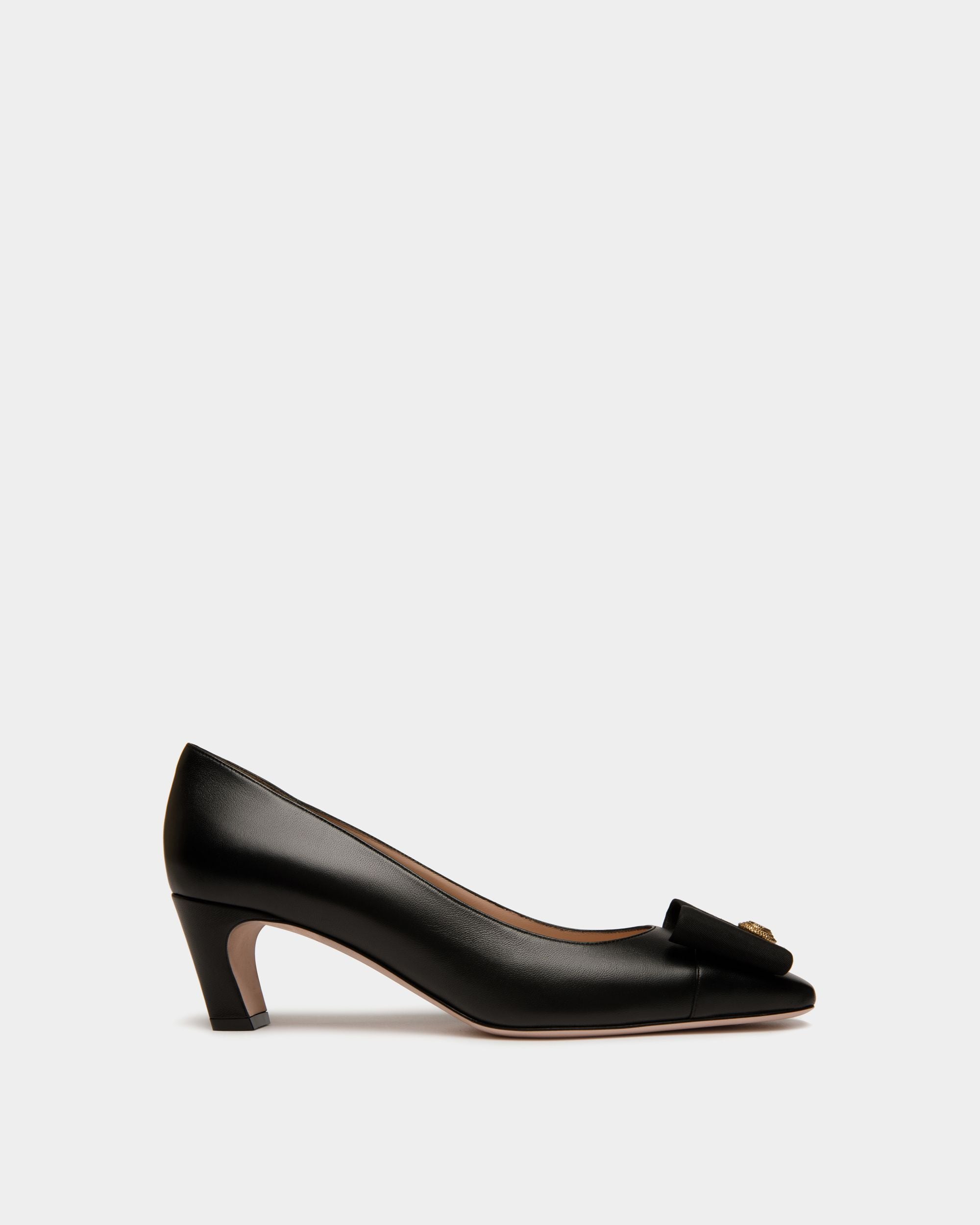The classic all-black silhouette of this leather pump is finished with an iconic bow from the Bally archives, refreshed with a Crest signifier at the center.