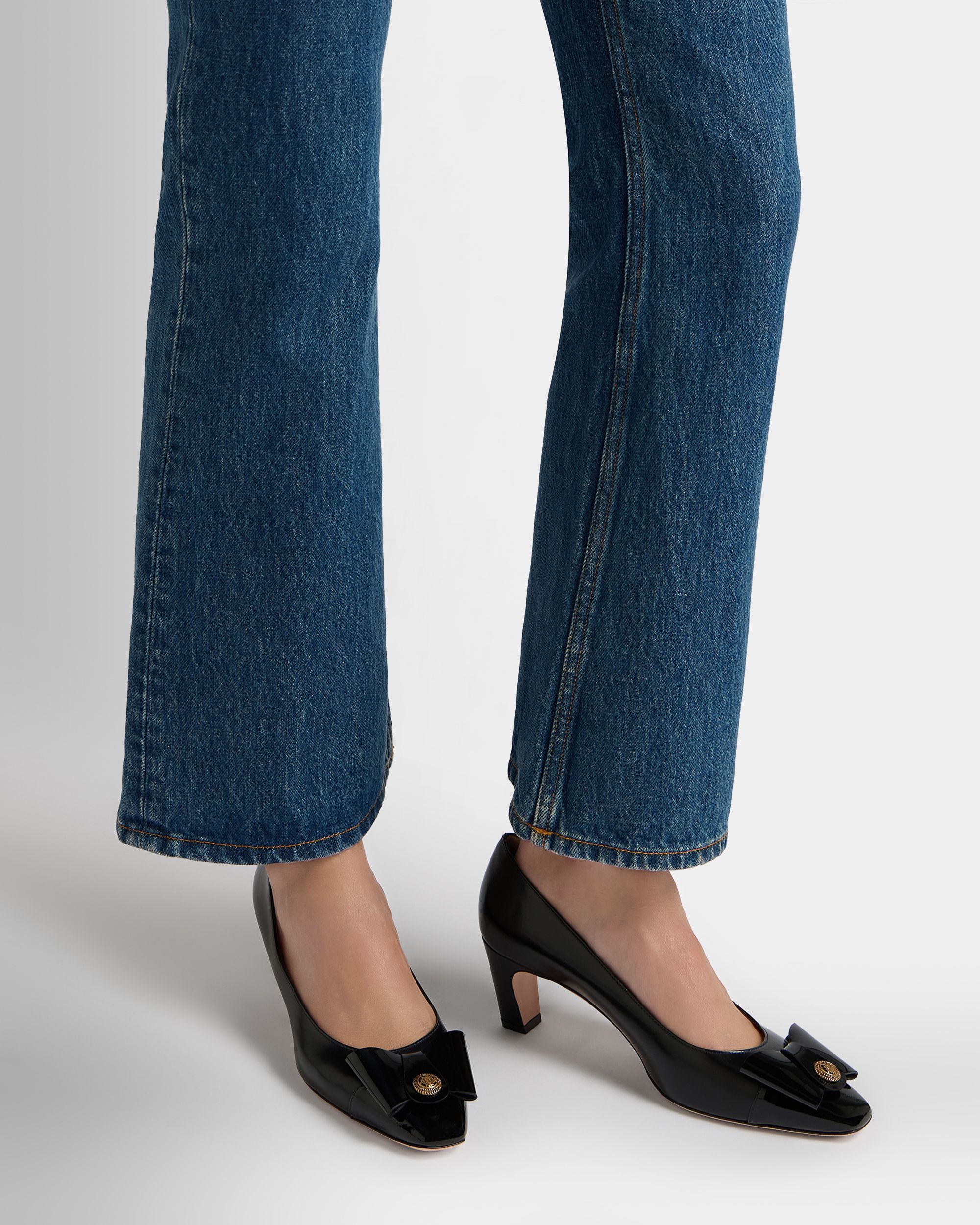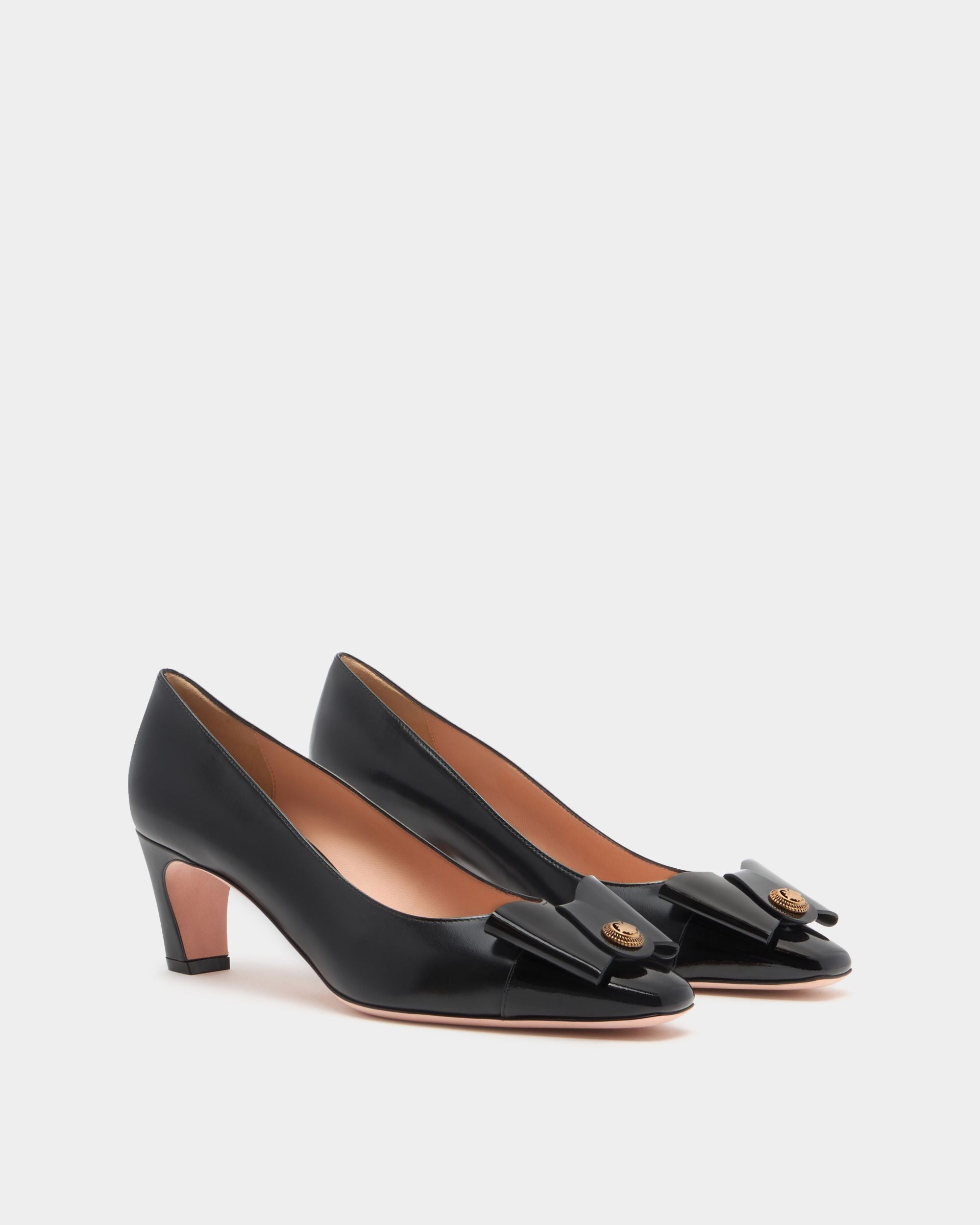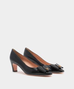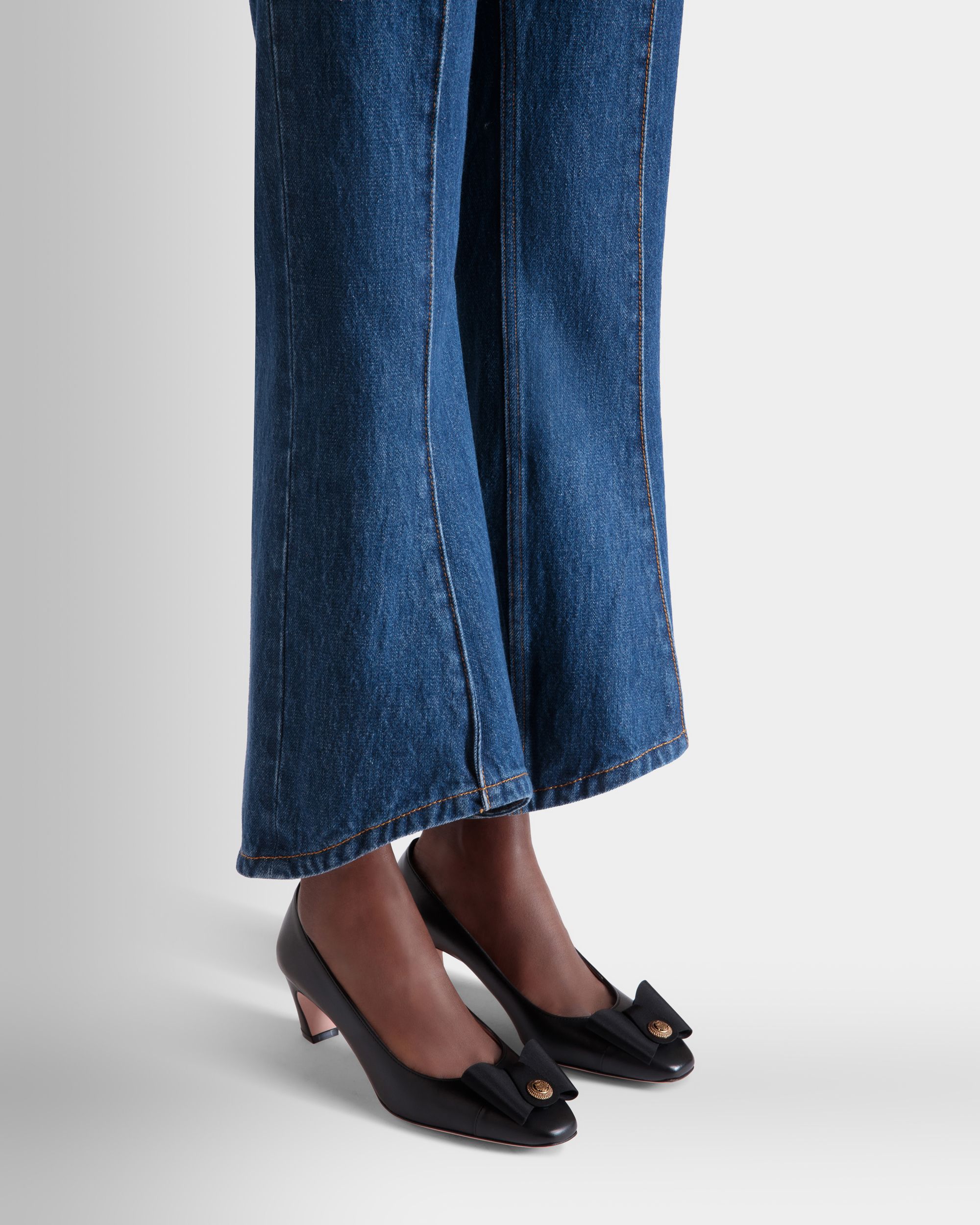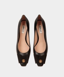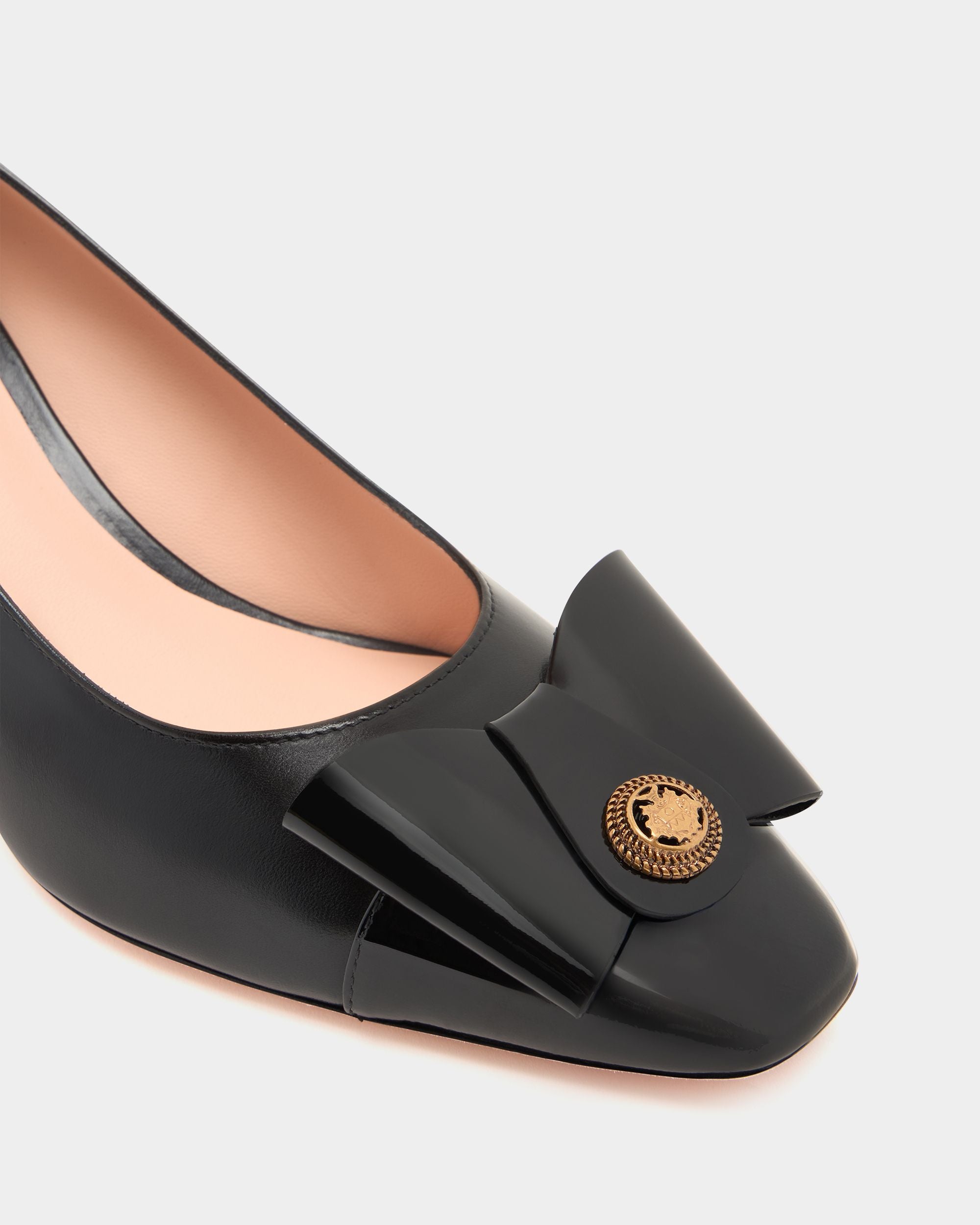 The classic all-black silhouette of this leather pump is finished with an iconic bow from the Bally archives, refreshed with a Crest signifier at the center.