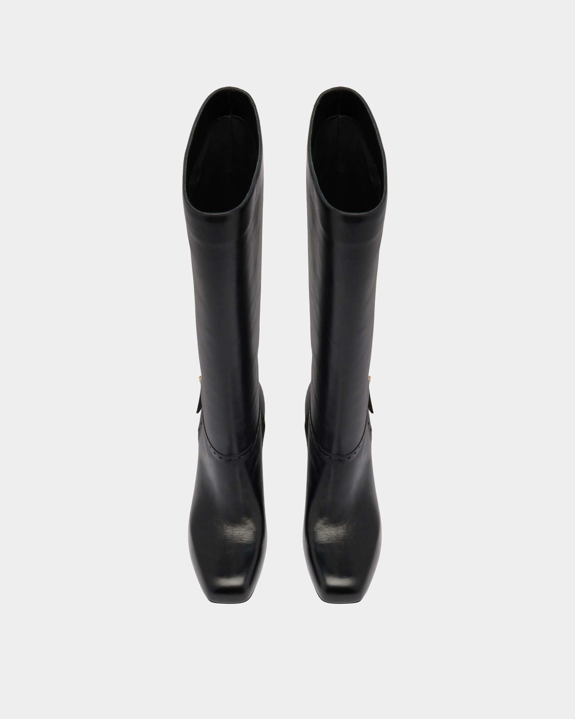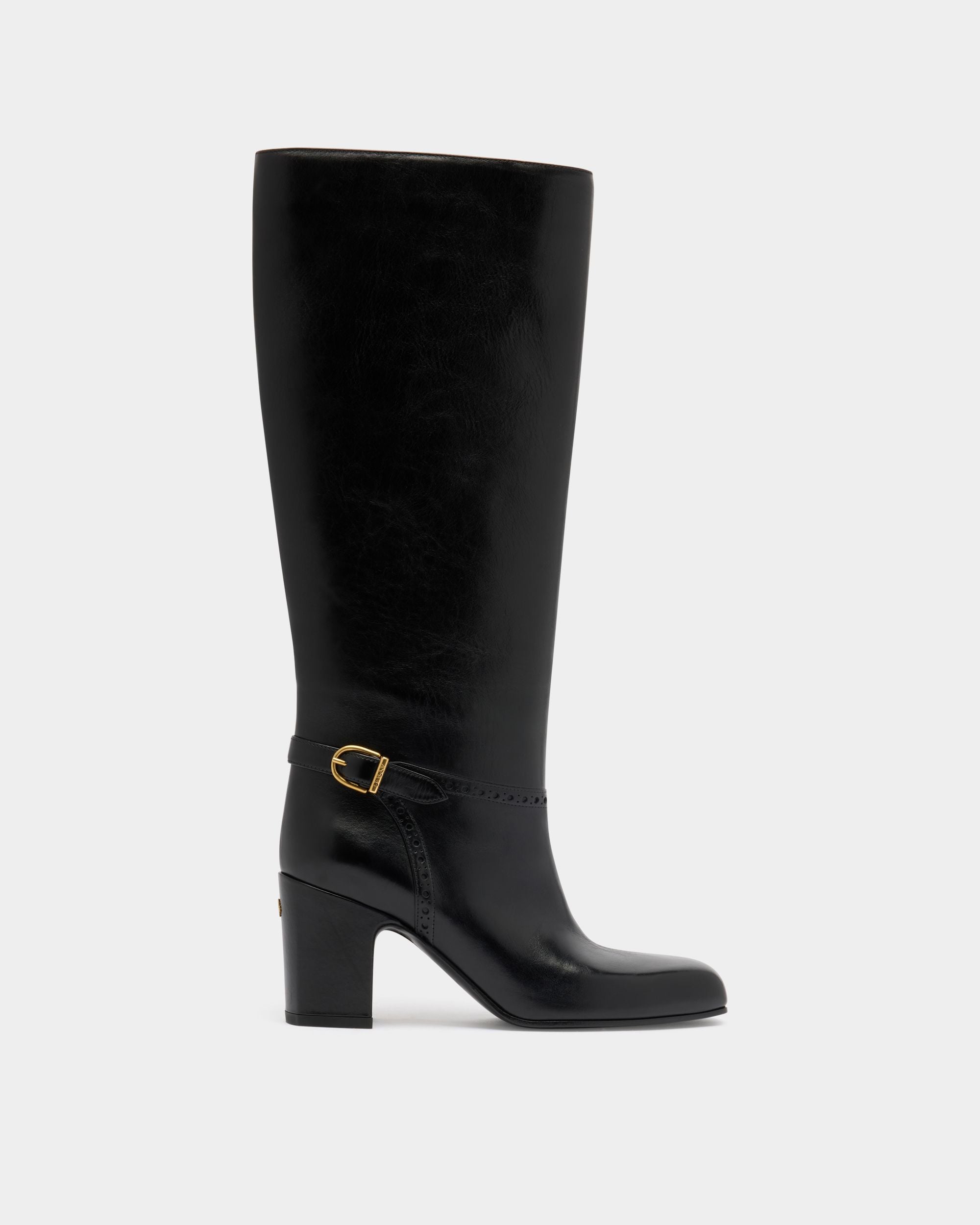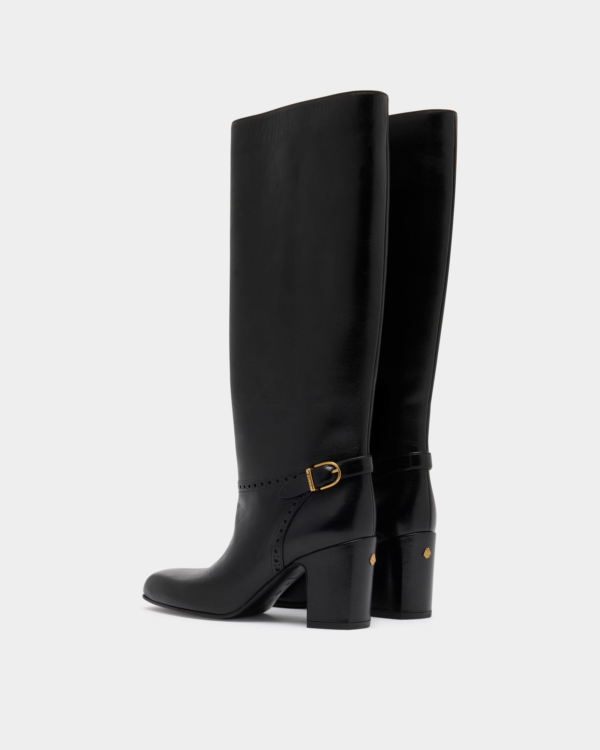 Inspired by an archival design but made for the modern day, this Eclayr boot is crafted in smooth black calfskin with a leather sole. Gold-tone hardware and decorative perforated details add an elegant touch.