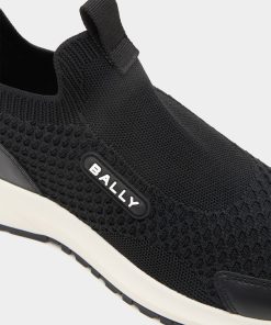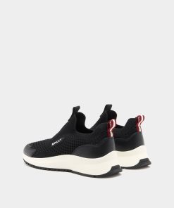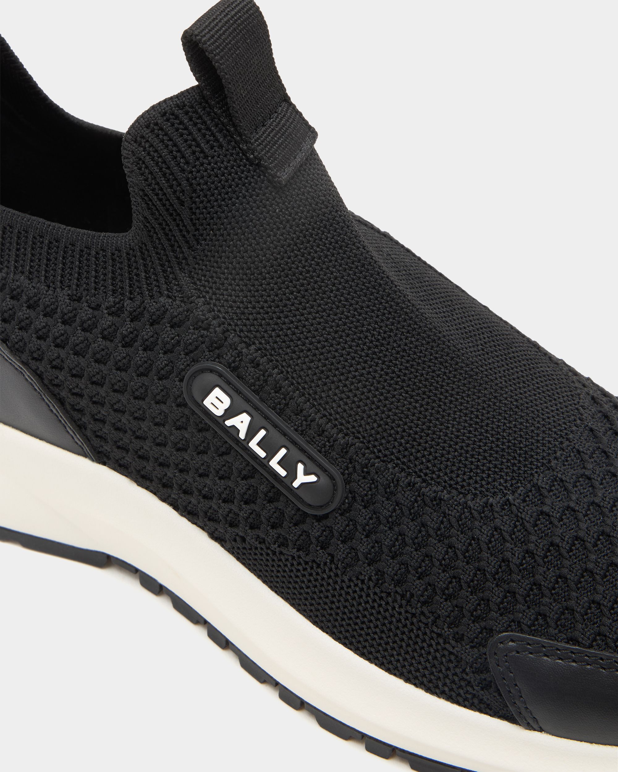 Clean and modern, this Outline sneaker features a pull-on black knit fabric upper and a thick rubber sole with a flexible, high-grip outsole. Bally Ribbon pull tab at the back.