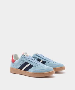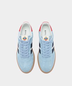 This Retro Crest sneaker sees a classic sneaker silhouette enriched by Bally signifiers. The light blue suede upper is united with a natural rubber sole for a fresh twist.