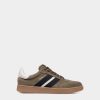 Criss-crossed straps in navy blue and white fabric define the upper of this Sylt flat sandal. A Bally Crest label in leather finishes the ankle strap, positioned to the side of the gold-tone metal buckle.