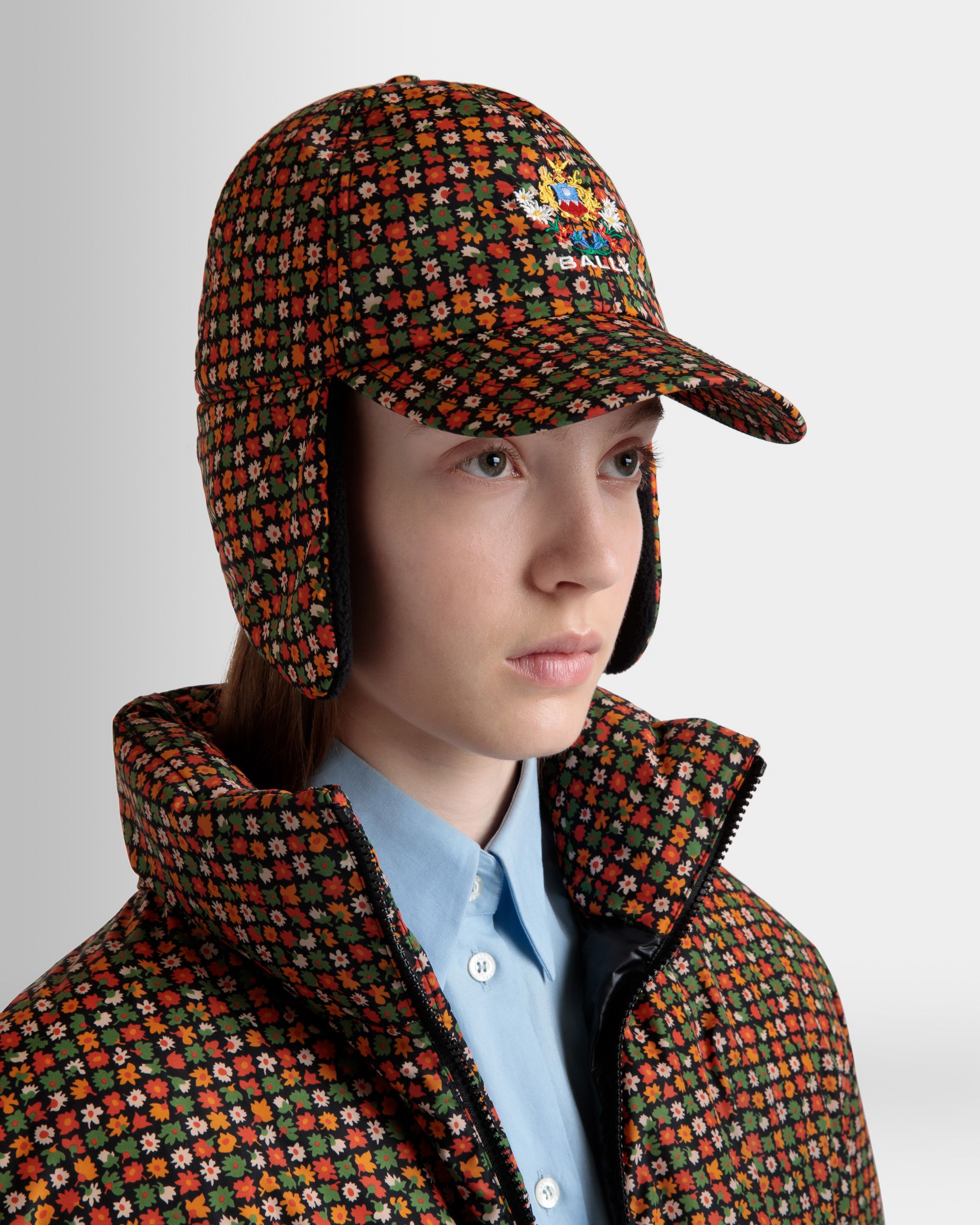Bally Women’s Winter Capsule Aviator Hat With Alpine Flowers In Multicolor Recycled Nylon | Multicolor