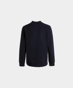 Men’s Long Sleeve Polo With A Bally Crest Logo In Navy Blue Cotton | Blue