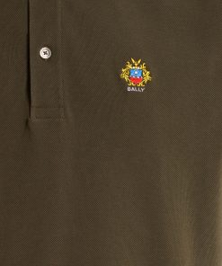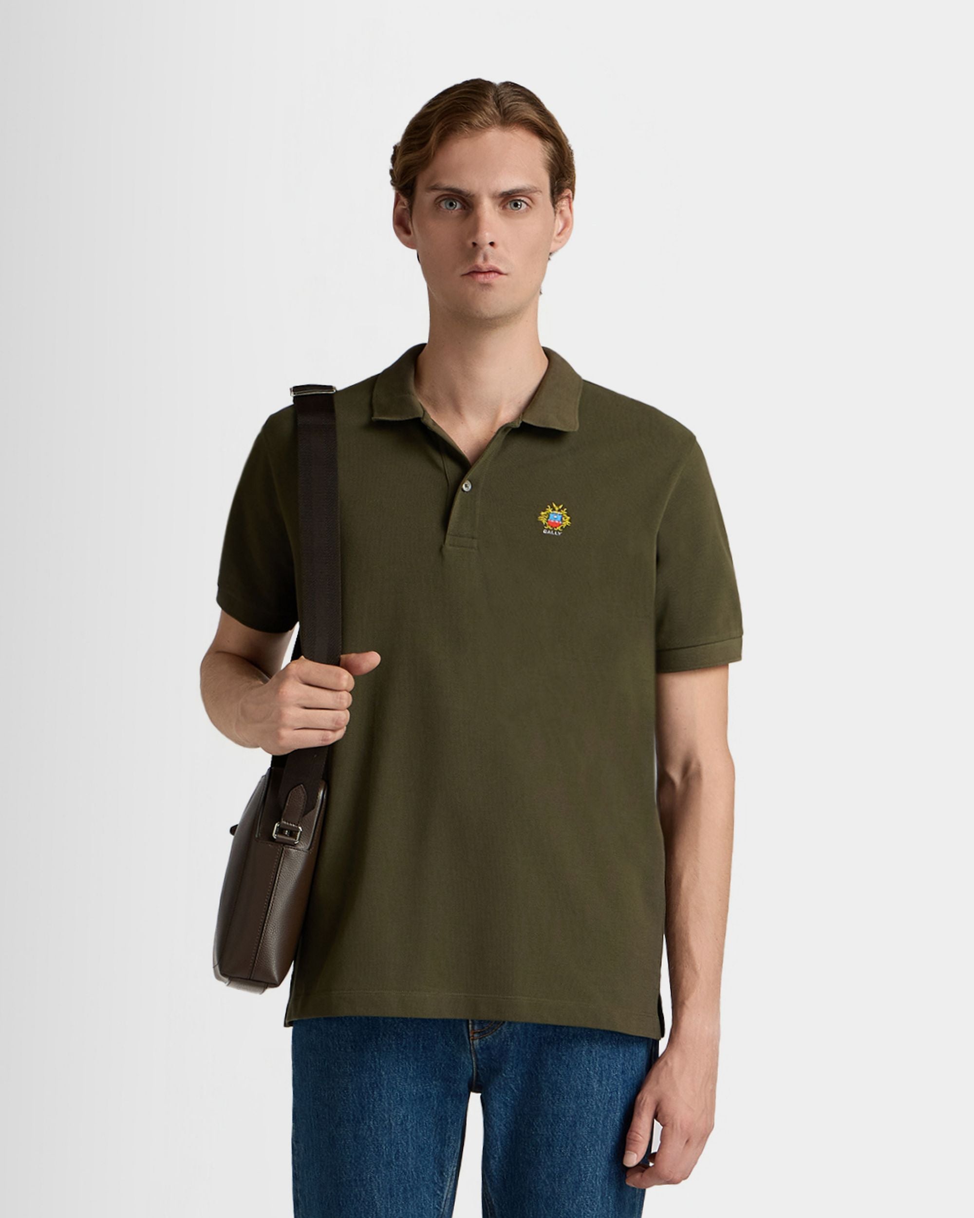 This military green short-sleeve polo shirt in lightweight piqué-knit cotton is decorated by a Bally Crest on the left chest. Two mother-of-pearl-effect buttons fasten the quarter placket.