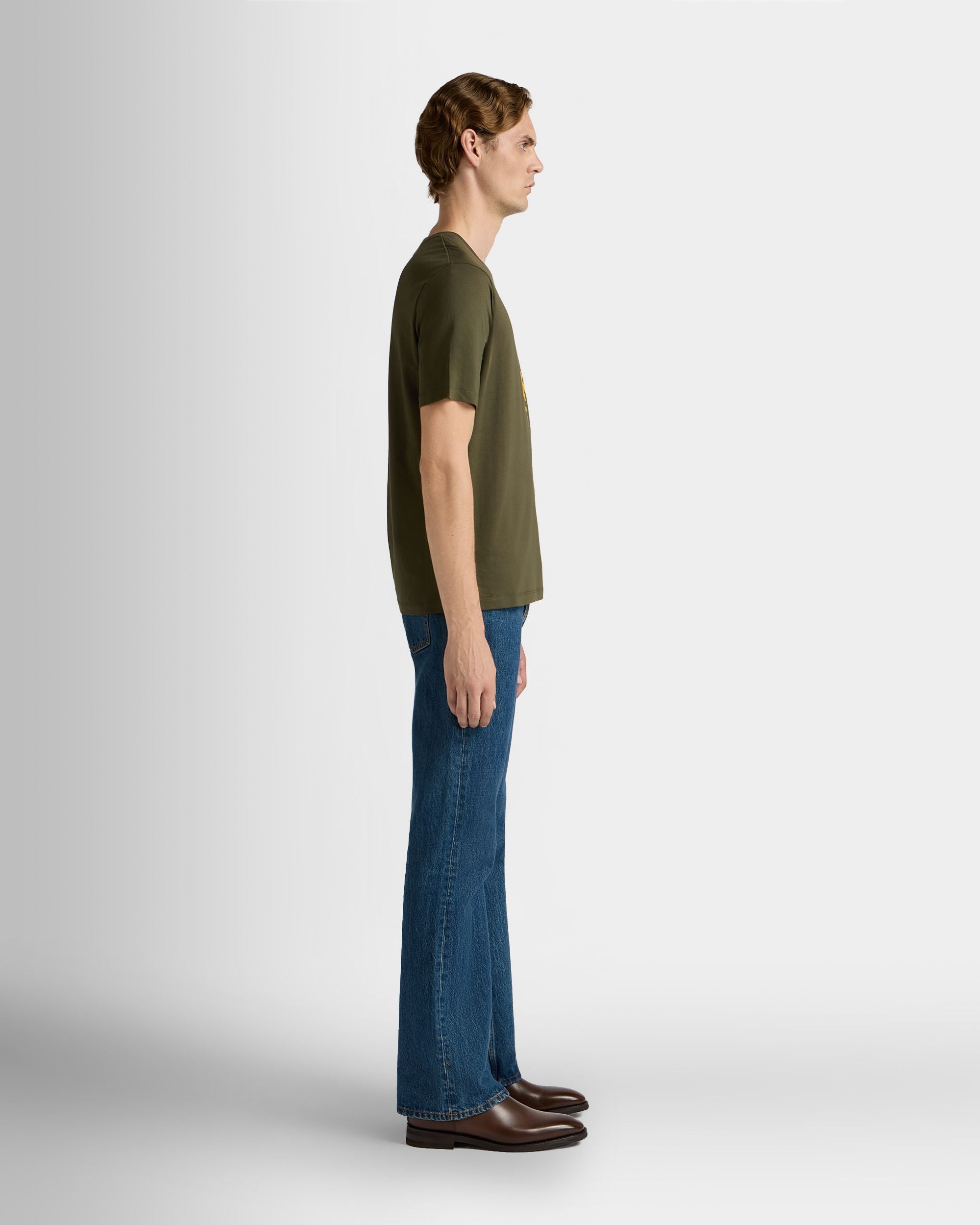 Men’s T-shirt In Military Green Cotton With A Bally Crest | Green