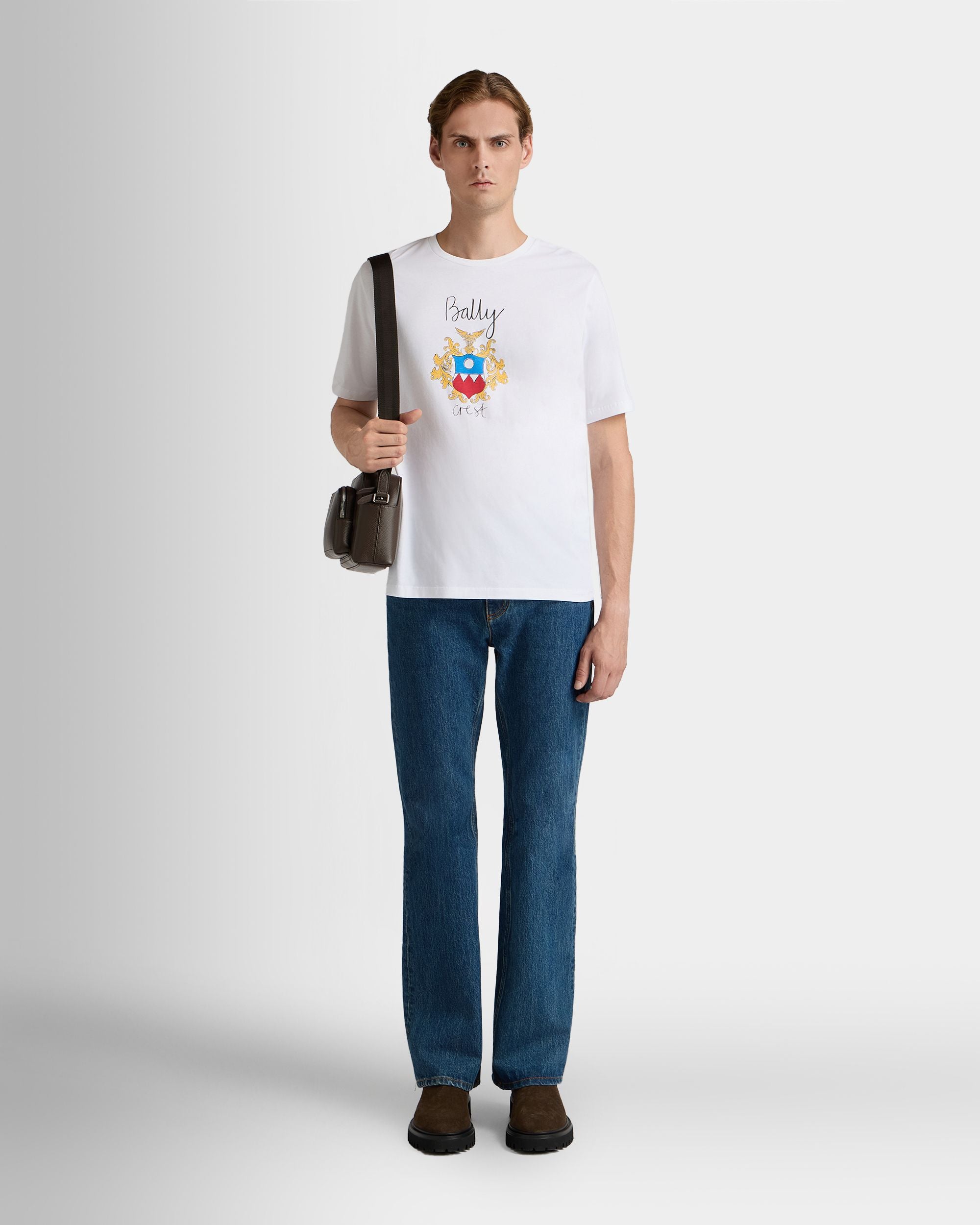 A large sketch of the Bally Crest embellishes the front of this crewneck t-shirt in white cotton.