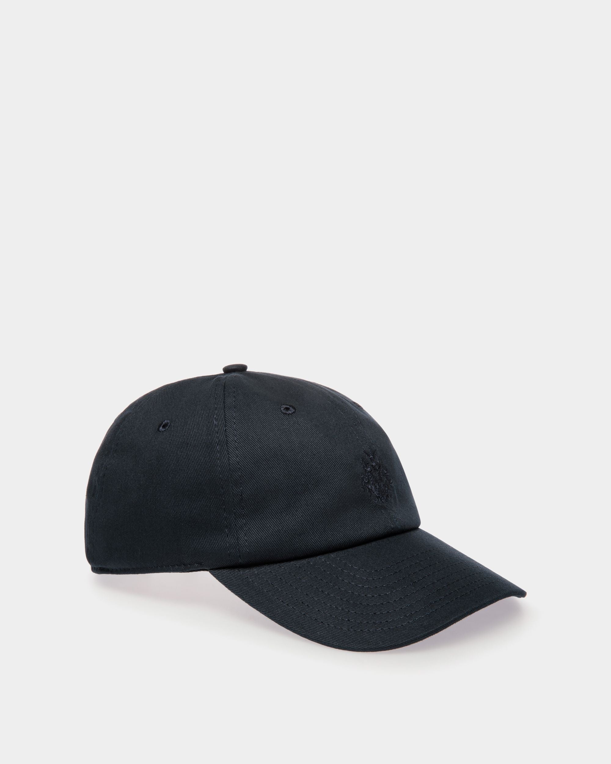 Baseball hat in navy blue cotton with an embroidered Bally Crest at the front and a Bally logo at the back.