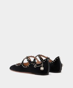 This Ballyrina flat reimagines Bally’s iconic ballet shoe with a black hair-on calfskin upper and chic metal studs. The Bally Crest is engraved on the bell of the safety pin, a signifier of the brand’s Swiss heritage.